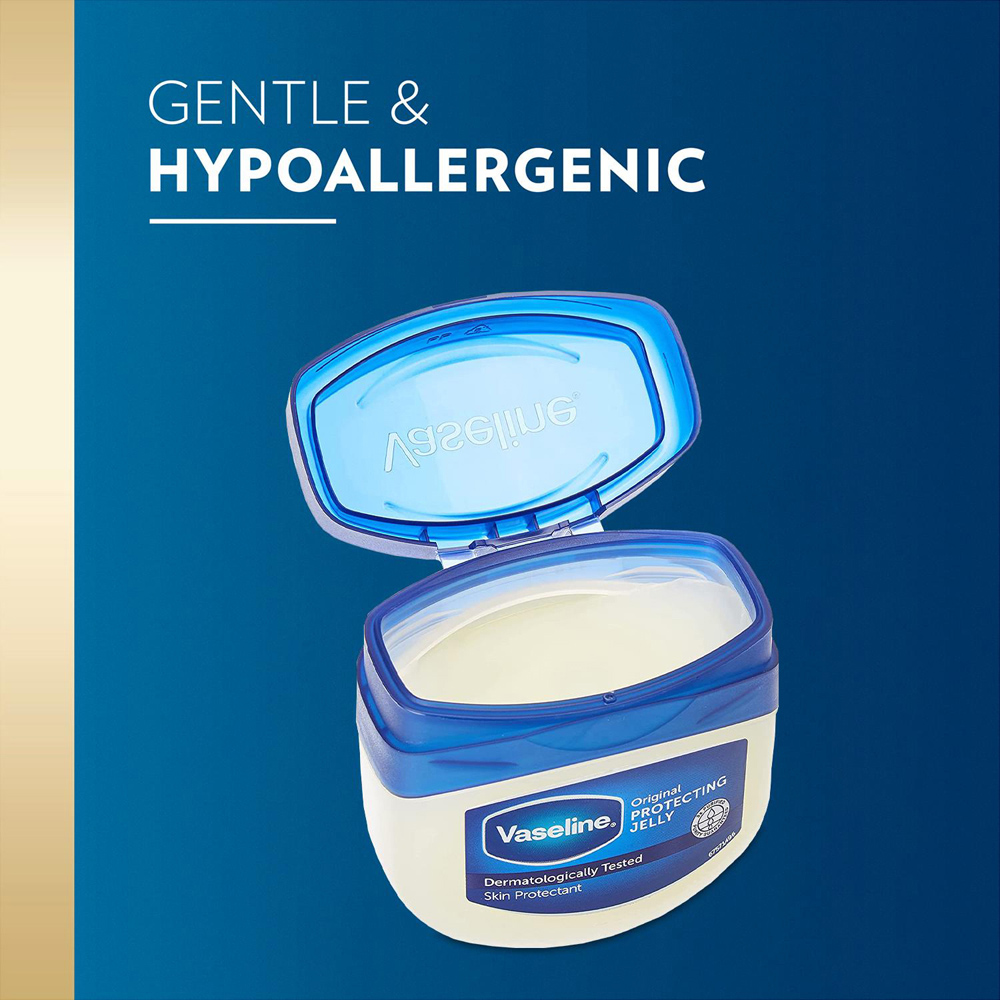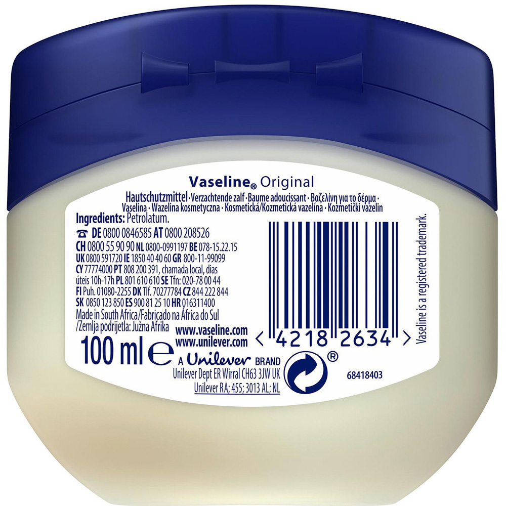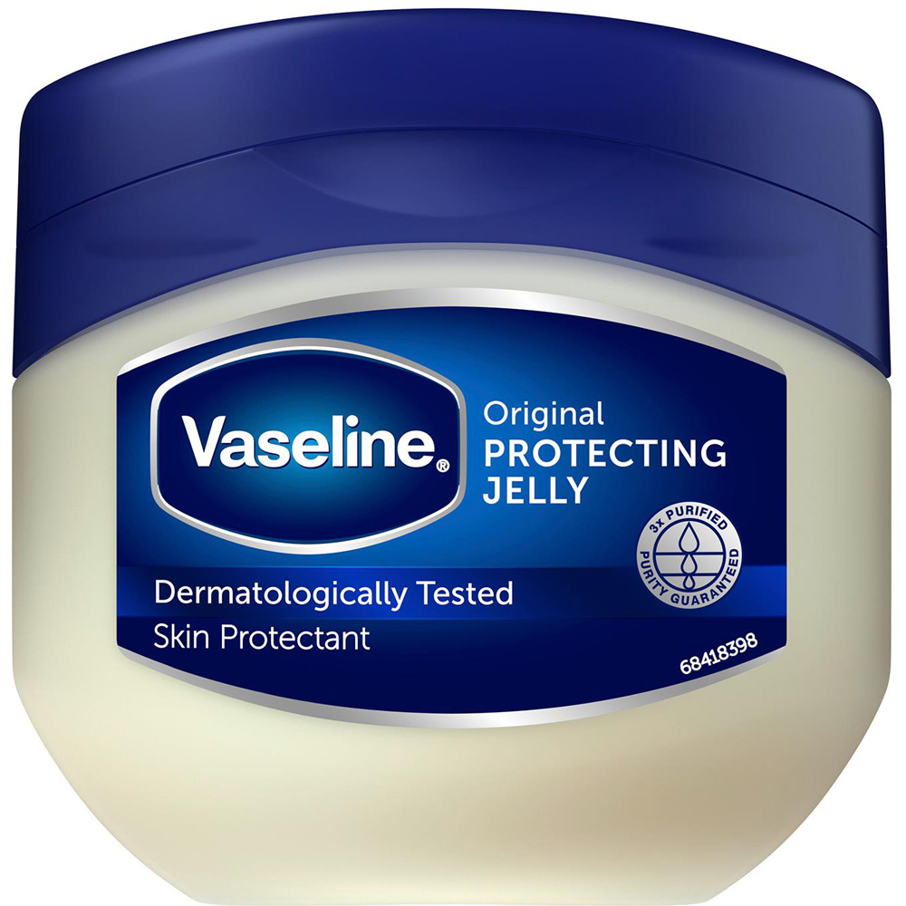 Vaseline Original Skin Protectant Petroleum Jelly for Sensitive Skin 100ml, 10pk is the original skin protectant. Vaseline petroleum jelly combines all of these properties in one convenient, flip-cap jar. Regular use of this hypoallergenic moisturiser will help you gently care for your skin and maintain smooth, deeply moisturised skin. Vaseline petroleum jelly original is triple-purified and hypoallergenic and is the ideal product for a multitude of uses including a moisturiser for sensitive skin. Its triple-purification seal guarantees each jar of Vaseline Jelly has been purified not once but three times to remove impurities. Original Vaseline jelly has many uses including personal care, baby care and beauty. By sealing in moisture, it assists the skin's natural recovery to help dry skin heal. This can rejuvenate visibly dry skin and help reduce the appearance of fine, dry lines. Vaseline petroleum jelly original has a variety of preventative and protective uses, including dry skin relief and protection from minor cuts. 100 Percent pure petroleum jelly, triple-purified, purity guaranteed can be used as a Vaseline lip salve. This is gentle on your skin, hypoallergenic and non-comedogenic (won't clog pores). Protects your skin from windburn and chapping, can be used as a nappy cream and also effective dry lip relief. This Vaseline petroleum jelly original helps protect minor cuts, scrapes and burns. How to Use: Apply to your hands. Spread across your body until fully absorbed, and reapply in the morning, at night, or as needed throughout the day.