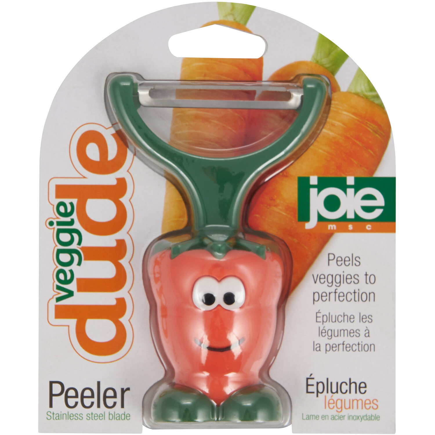 The Veggie Dude Peeler is a unique and stylish kitchen utensil. The peeler is shaped like a carrot and is ideal for peeling vegetables and potatoes. It helps to peel veggies to perfection for whatever you're making and is easy to hand wash after use.