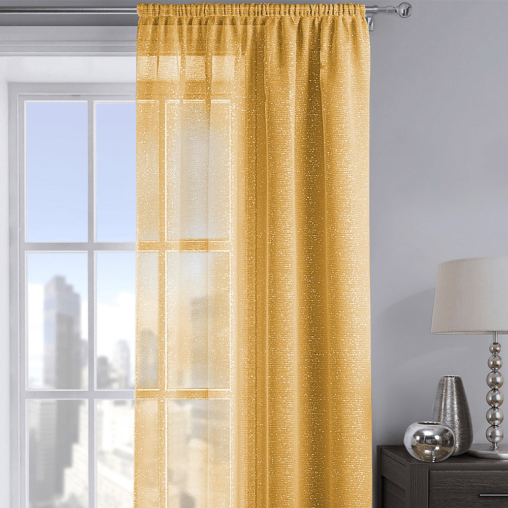 Velosso Alessandria Yellow Shimmer Voile Panel Curtain 137 x 137cm
