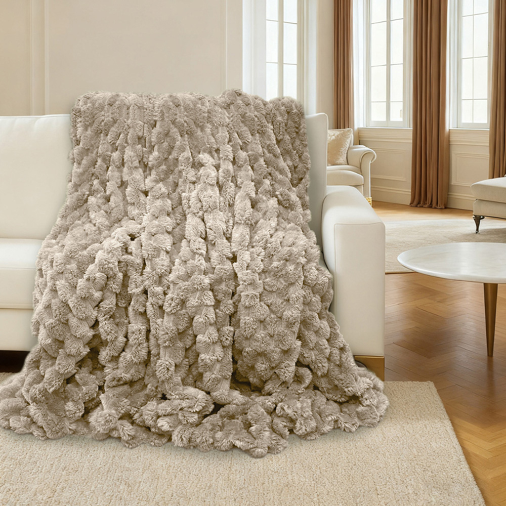 Velosso Beige Chunky Popcorn Beige Throw 150 x 200cm