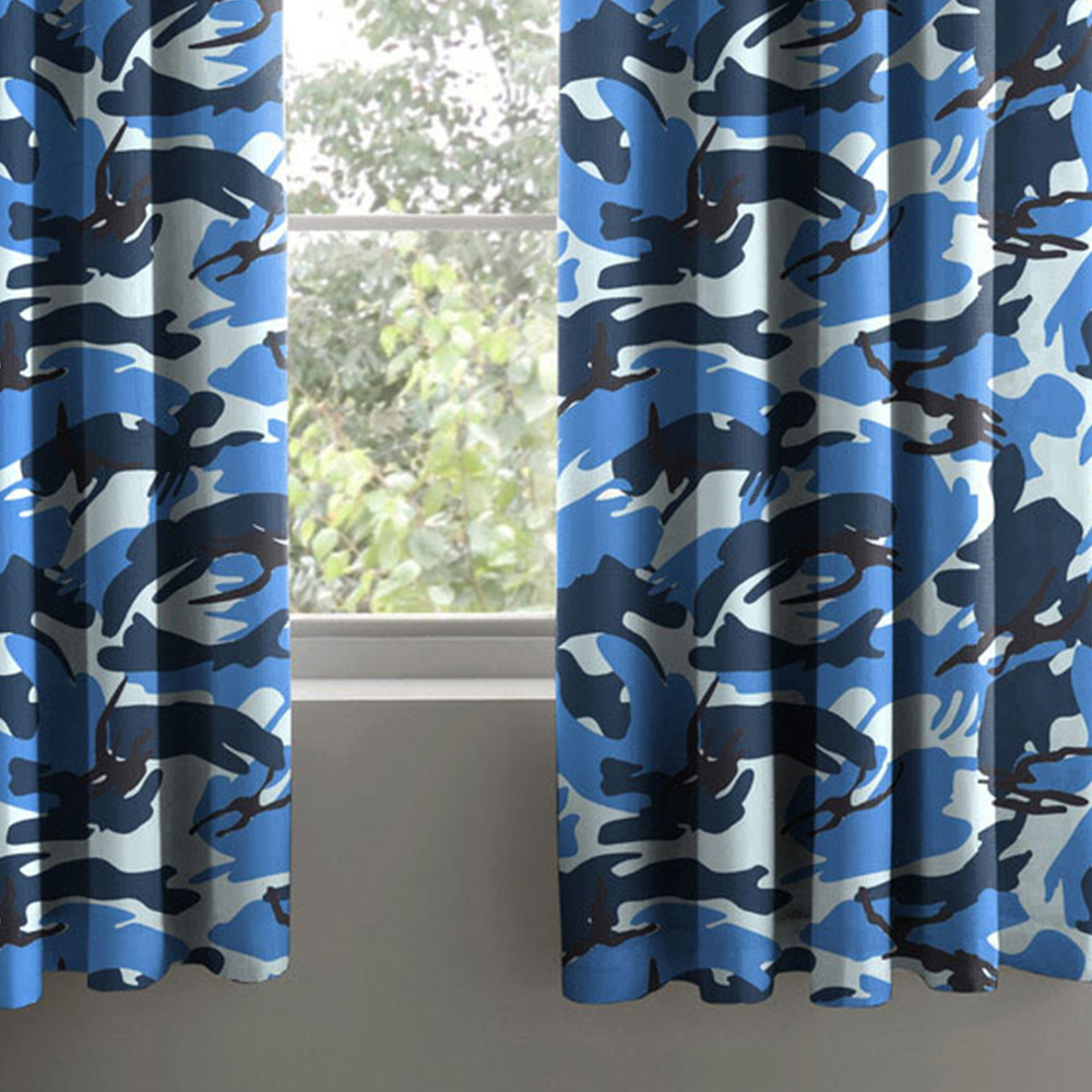 Transform your room with the Velosso Blue Camouflage Pencil Pleat Curtains 168 x 183cm to achieve a stylish army-inspired look. These curtains are crafted from durable, fade-resistant fabric and are effortless to hang on standard curtain poles. Perfect for those who appreciate military motifs, they are designed with easy maintenance in mind, featuring ring tops and being machine washable.