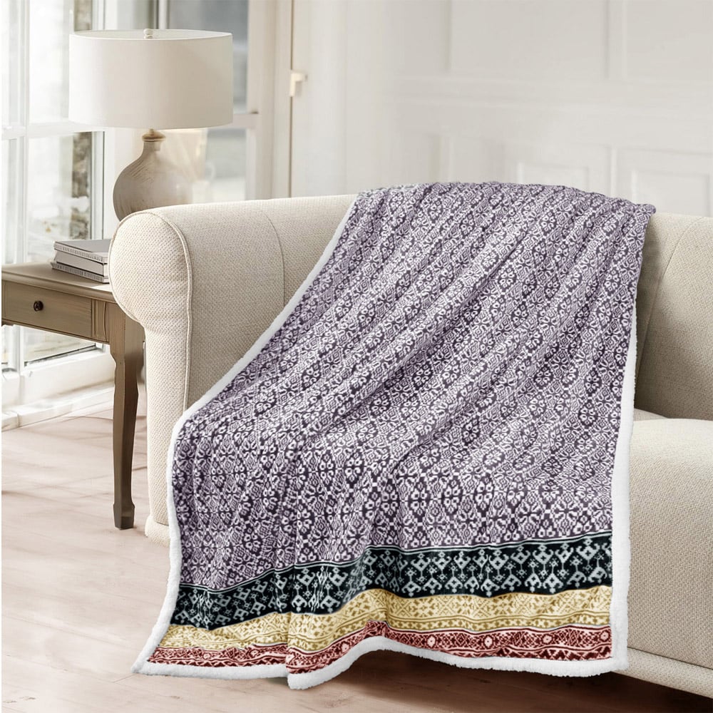 Velosso Charcoal Aztec Sherpa Backed Throw 130 x 180cm
