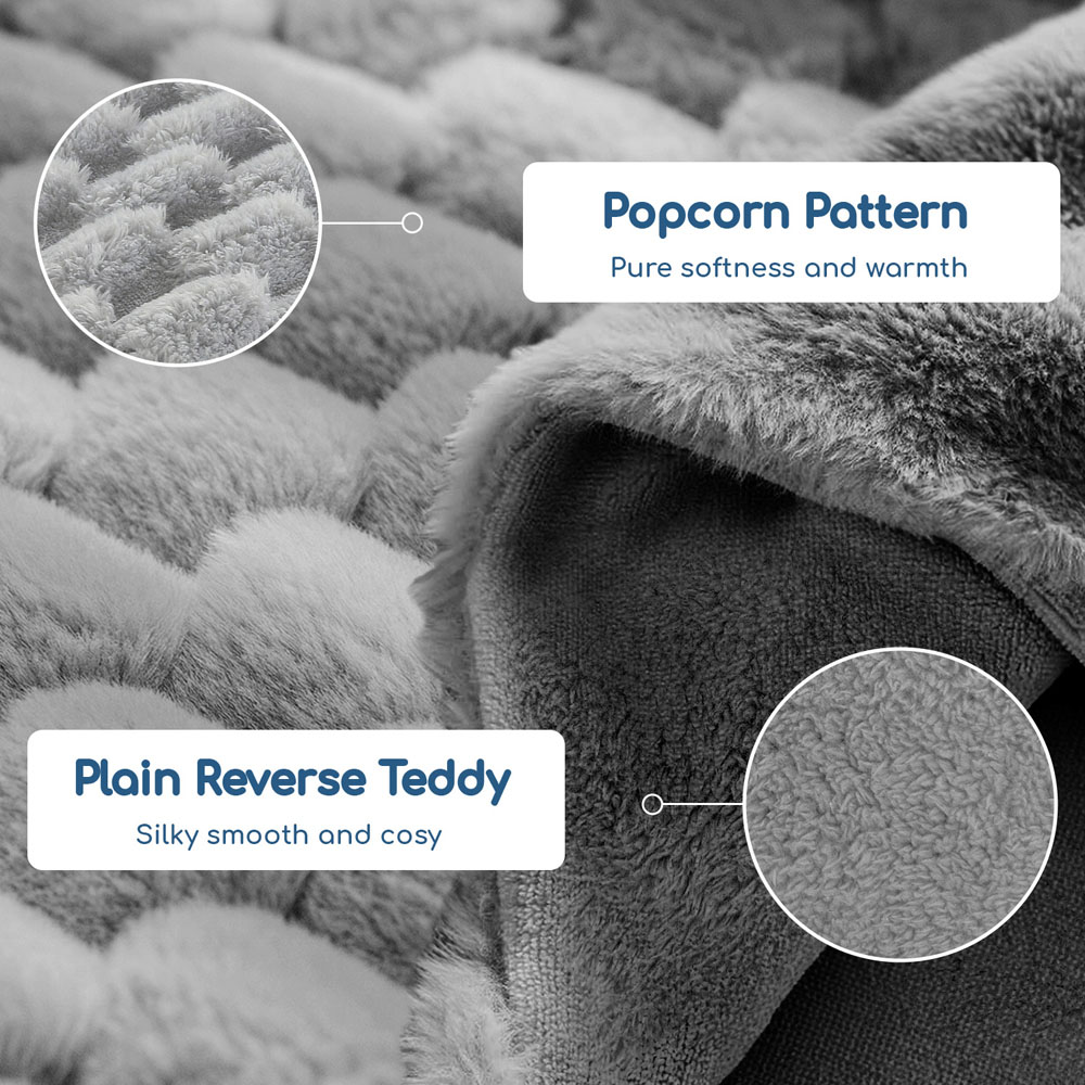 Wrap yourself in comfort as the chunky popcorn-textured duvet set brings warmth and a touch of style to your bedroom. Featuring a plush popcorn-textured front and a super-soft teddy fleece reverse, you'll stay cosy on chilly nights without needing to turn up the heating. The set is designed to suit any decor and makes a perfect winter bedding essential. With easy-care, machine-washable fabric and a secure button closure, keeping your bed fresh and inviting couldn't be simpler.