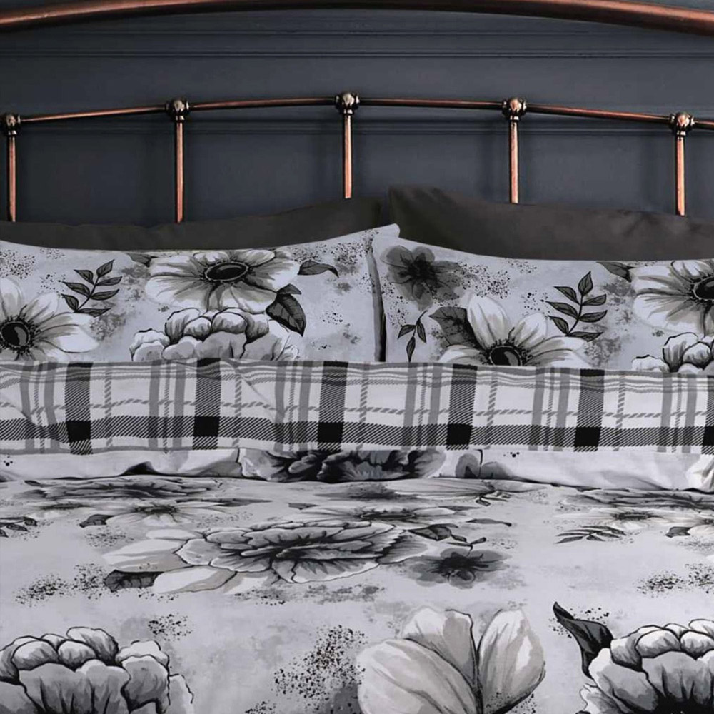 Velosso EasyCare Single Grey Classic Floral Reversible Duvet Set