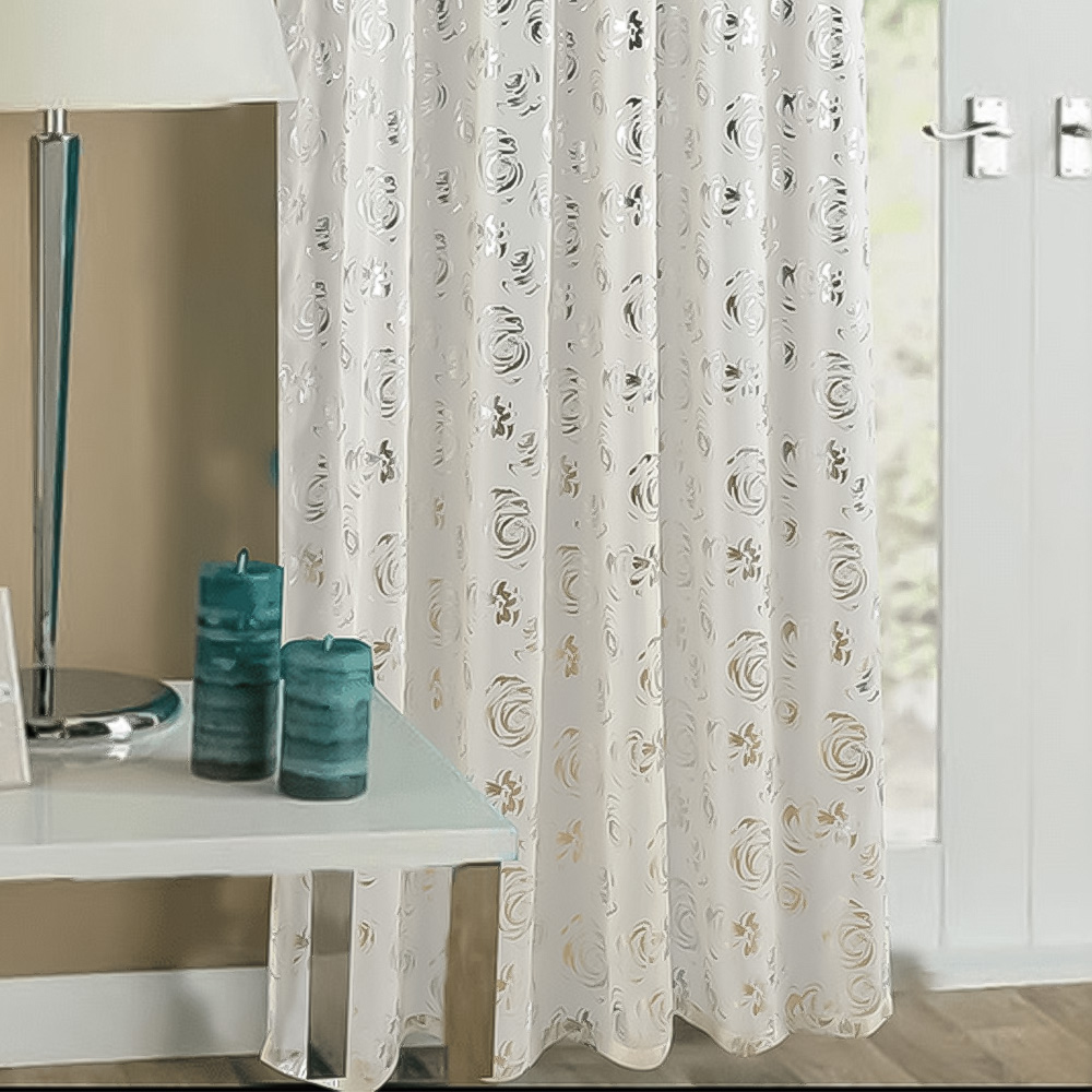 Velosso Geneva Cream Foil Flower Voile Panel Curtain 150 x 137cm