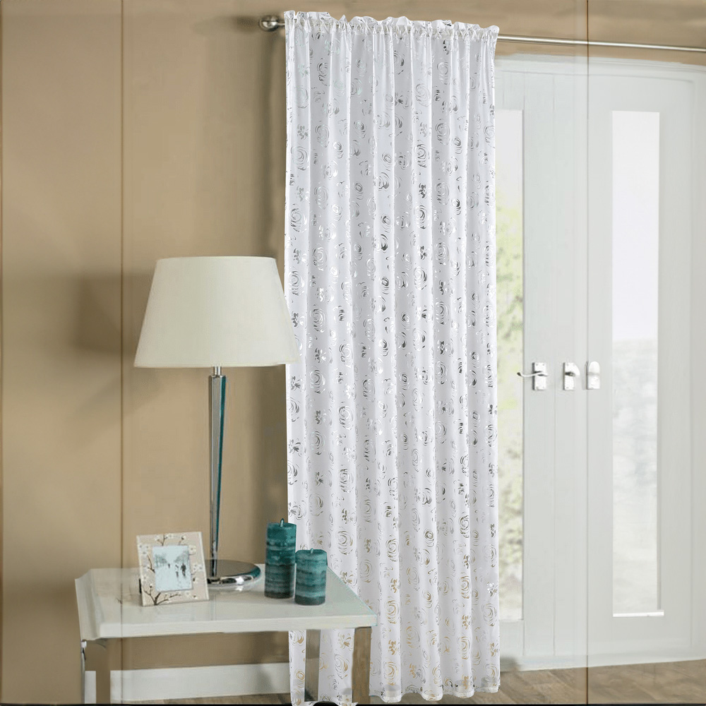 Velosso Geneva White Foil Flower Voile Panel Curtain 150 x 137cm