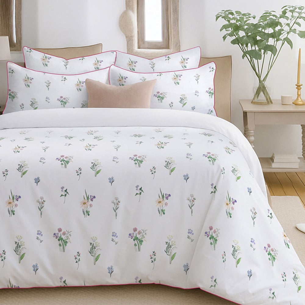 Bring a breath of fresh air to your bedroom with a duvet set that features a delicate floral pattern on crisp white, finished with a soft pink piped edge for a modern touch. The uplifting botanics print instantly brightens your space, while the easy-care fabric ensures comfort and fuss-free maintenance. Complete with matching pillowcases and a secure button closure, you'll find this set is ideal for updating your room with timeless botanical style that feels as good as it looks.