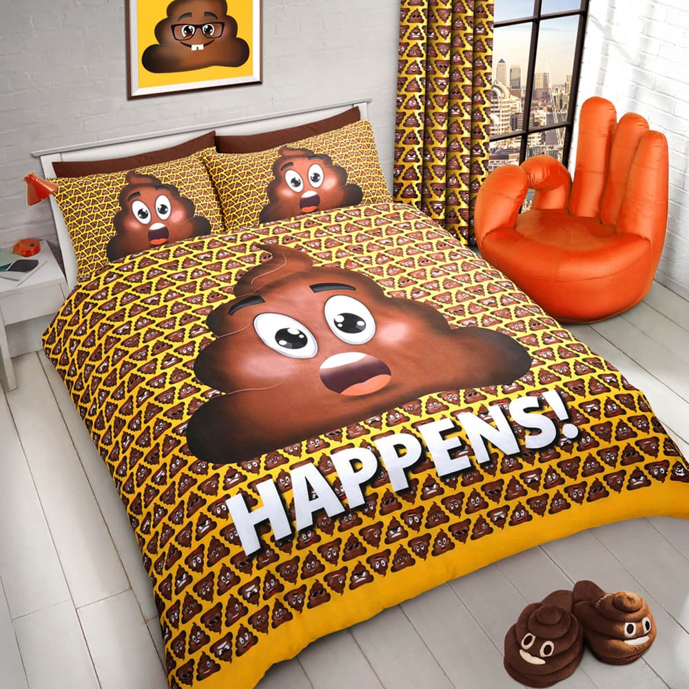 Bring a smile to bedtime with a duvet cover set that bursts with bold emoji prints and a cheeky 'Happens!' slogan, making any bedroom feel playful and full of personality. Designed for children, teens or anyone who enjoys a laugh, this bedding set uses vibrant colours and lively patterns to create a fun focal point. Soft easy-care fabric ensures comfort and durability, while the matching pillowcases complete the look, so you can refresh your space with minimal effort.