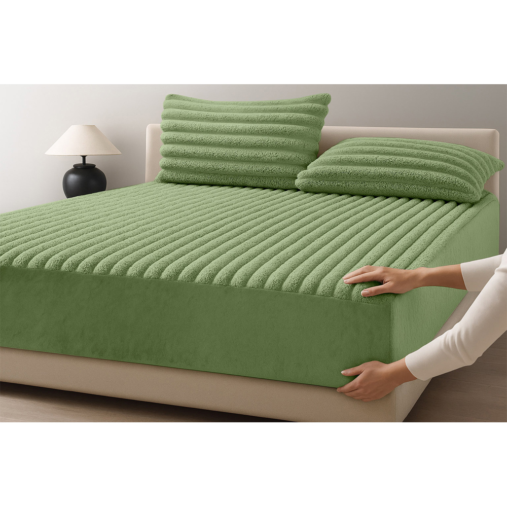 Velosso King Size Olive Jumbo Cord Fitted Bed Sheet