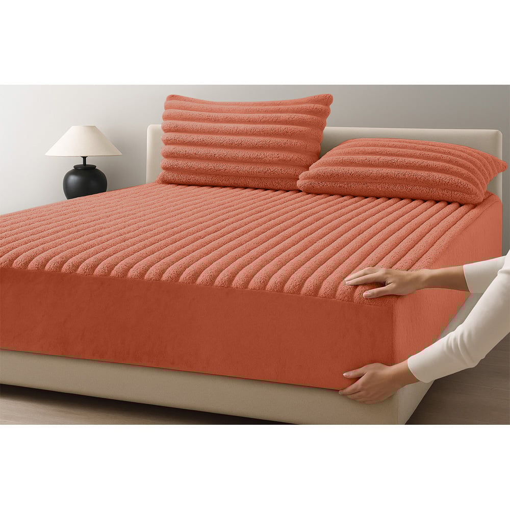 Velosso King Size Rust Jumbo Cord Fitted Bed Sheet