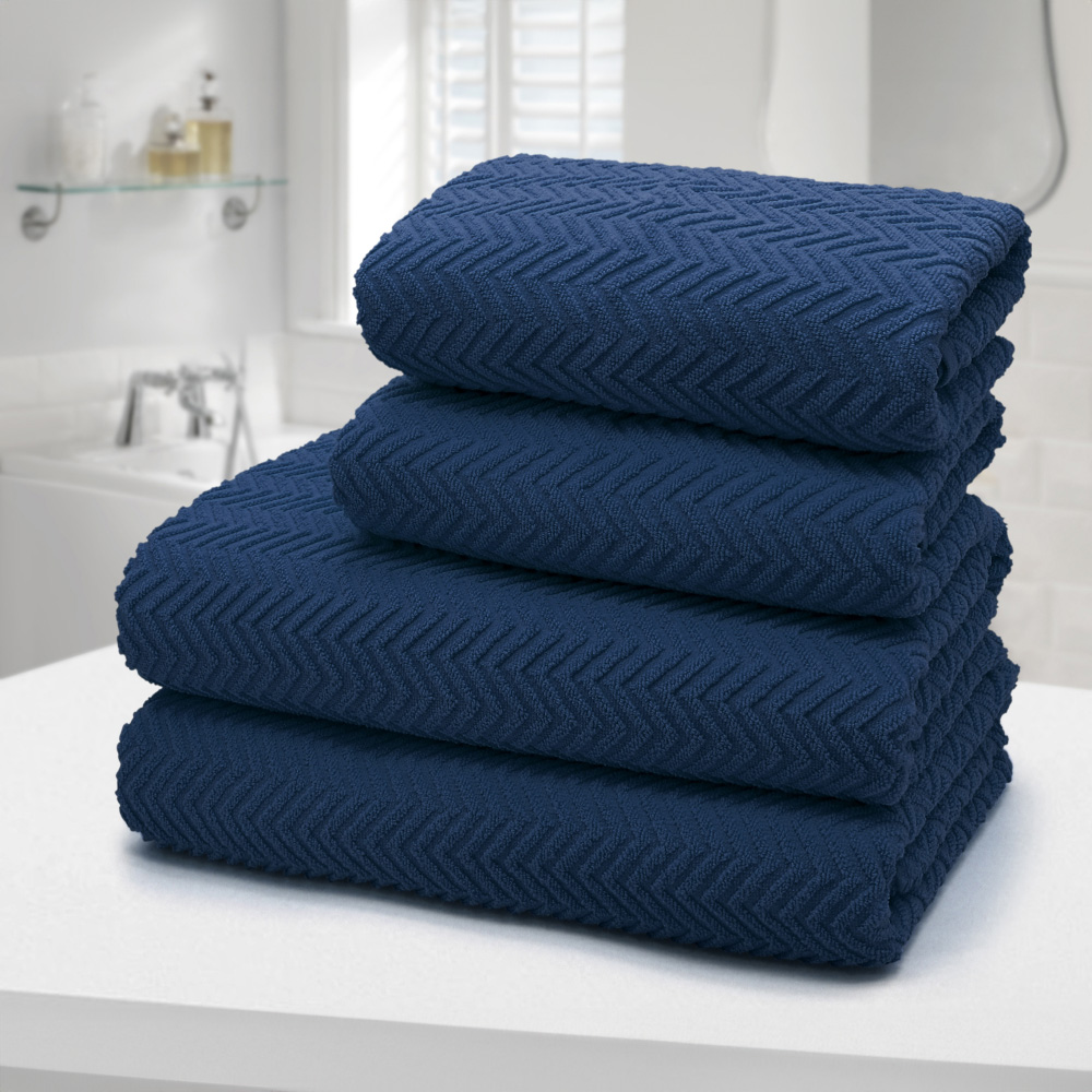 Accessorise your bathroom with this simplistic yet chic Velosso Moda Navy Hand Towel Set of 2. Made from 100% high-quality cotton, these towels have a chevron design and are plush, soft and absorbent. With a 480 GSM count, they feel velvety softness, providing a gentle touch against your skin with every use. They're super absorbent and will dry you off your hands quickly. The towels are machine washable and can tumble dry, making laundry day a breeze. Maintain their softness and vibrant colours with simple care instructions. It is also certified by the Oeko-Tex Standard 100, ensuring they are free from harmful substances.