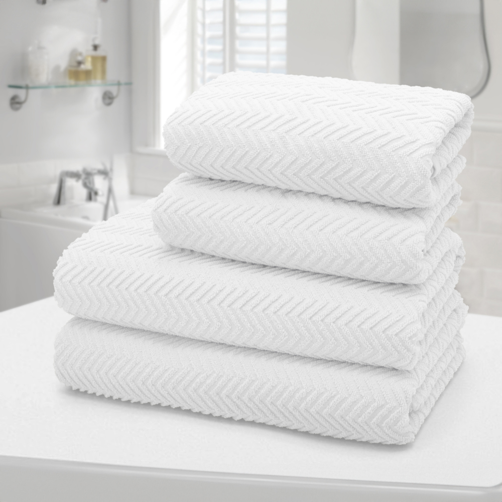 Accessorise your bathroom with this simplistic yet chic Velosso Moda White Bath Towel Set of 2. Made from 100% high-quality cotton, these towels have a chevron design and are plush, soft and absorbent. With a 480 GSM count, they feel velvety softness, providing a gentle touch against your skin with every use. They're super absorbent and will dry you off your hands quickly. The towels are machine washable and can tumble dry, making laundry day a breeze. Maintain their softness and vibrant colours with simple care instructions. It is also certified by the Oeko-Tex Standard 100, ensuring they are free from harmful substances.