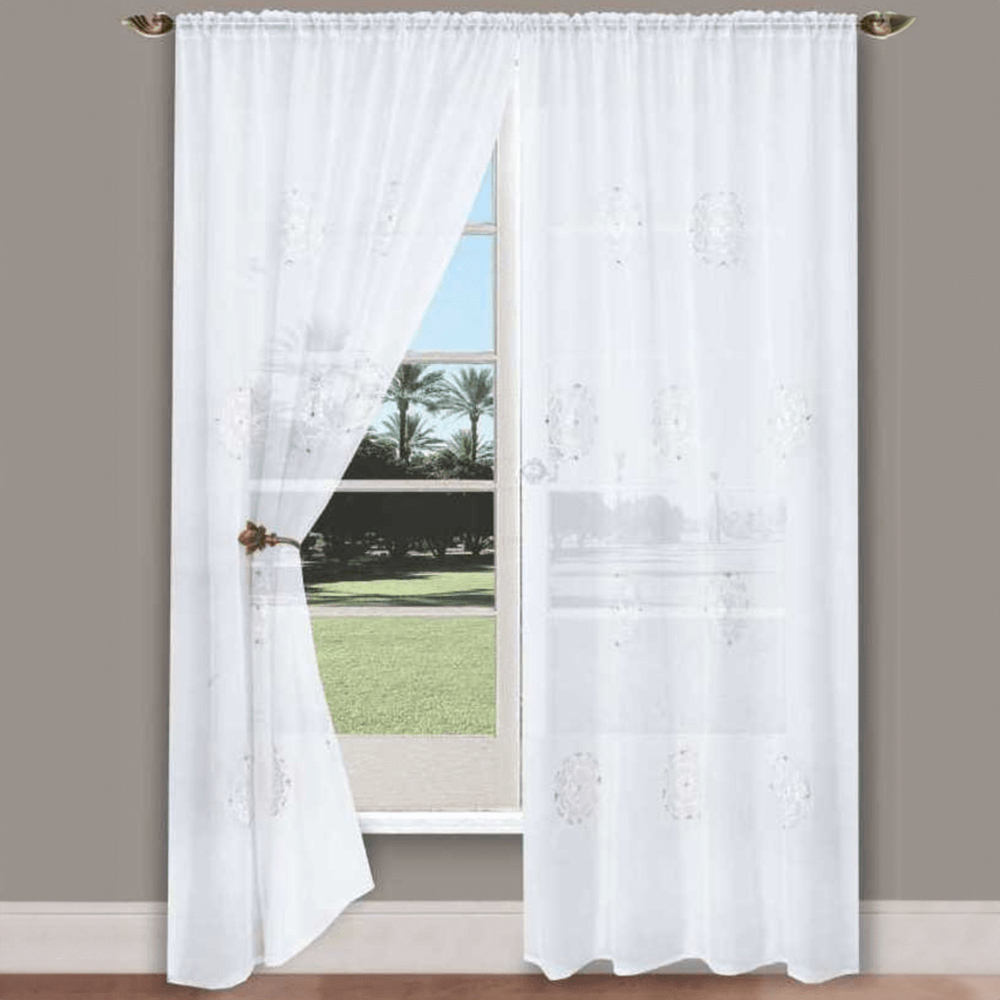 Velosso Nova Diamante White Voile Panel Curtain 150 x 228cm