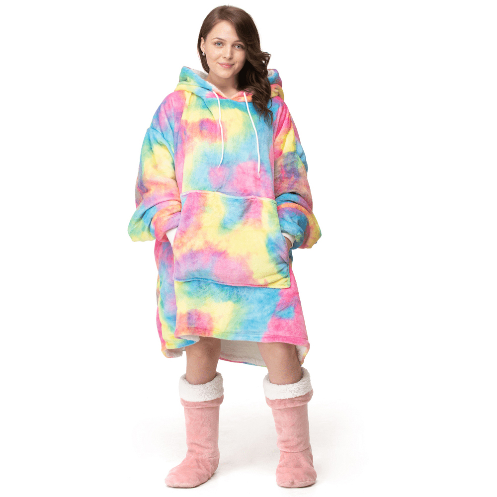 Enhance your winter wardrobe essentials with the Velosso Rainbow Hoodie Oversize Multicolour. It features a vibrant rainbow design with a cosy fit. It is crafted using thermal fabric with a sherpa lining to keep you warm during the winter season. This oversized hoodie features a large hood with elasticated cuffs and a two-sided kangaroo pocket. This hoodie is ideal for snuggling while relaxing, travelling or camping purposes. This cosy and stylish hoodie is an ideal gift option for your loved ones. It effortlessly blends with all types of contemporary and classic clothing styles.