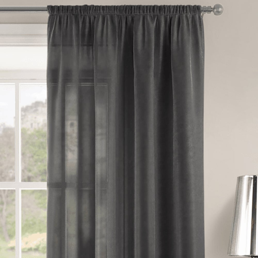 Velosso Riva Plain Black Slot Top Voile Panel Curtain 150 x 182cm