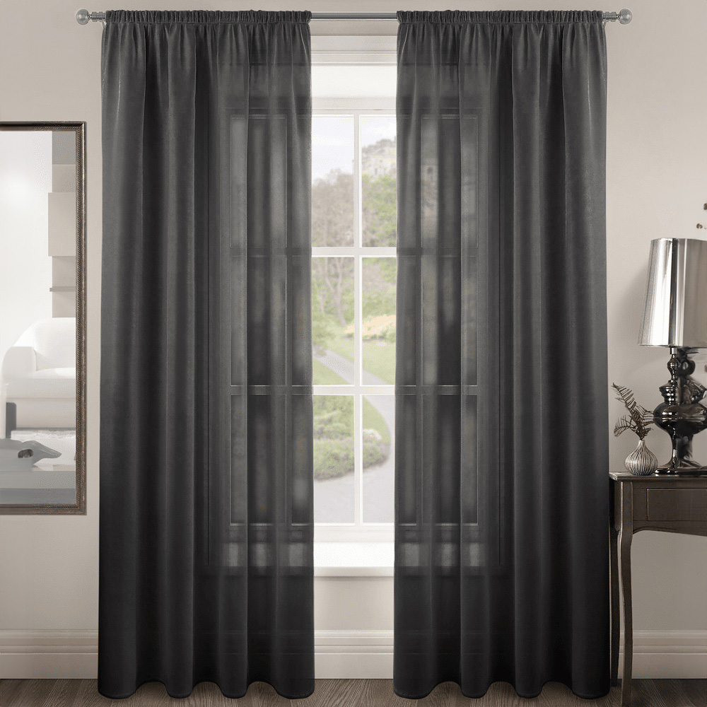 Velosso Riva Plain Black Slot Top Voile Panel Curtain 150 x 228cm