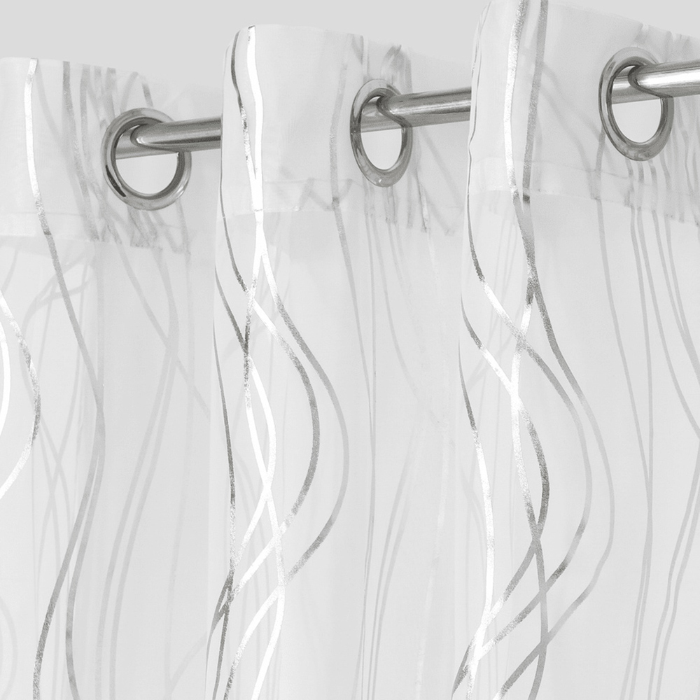 Velosso Silver Swirls Eyelet Voile Panel Curtain 150 x 137 cm