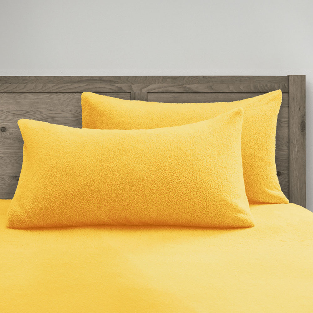 Revamp your bedroom with the luxurious Velosso Single Ochre Teddy Fleece Duvet Set. This bedding collection offers ultimate cosiness, enveloping you in supreme softness while maintaining the perfect temperature throughout the night. The duvet set is crafted from 100% easy-care teddy bear fleece, providing an irresistibly soft touch that invites you into a world of plush relaxation. The polyester fibres not only provide warmth but also help regulate temperature, making it an ideal choice for the winter season. Designed for an exceptional sleep environment, this set features a button closure that secures your duvet and enhances its visual appeal. Additionally, the set is practical and convenient, as it is machine washable, ensuring easy maintenance while preserving its pristine condition.