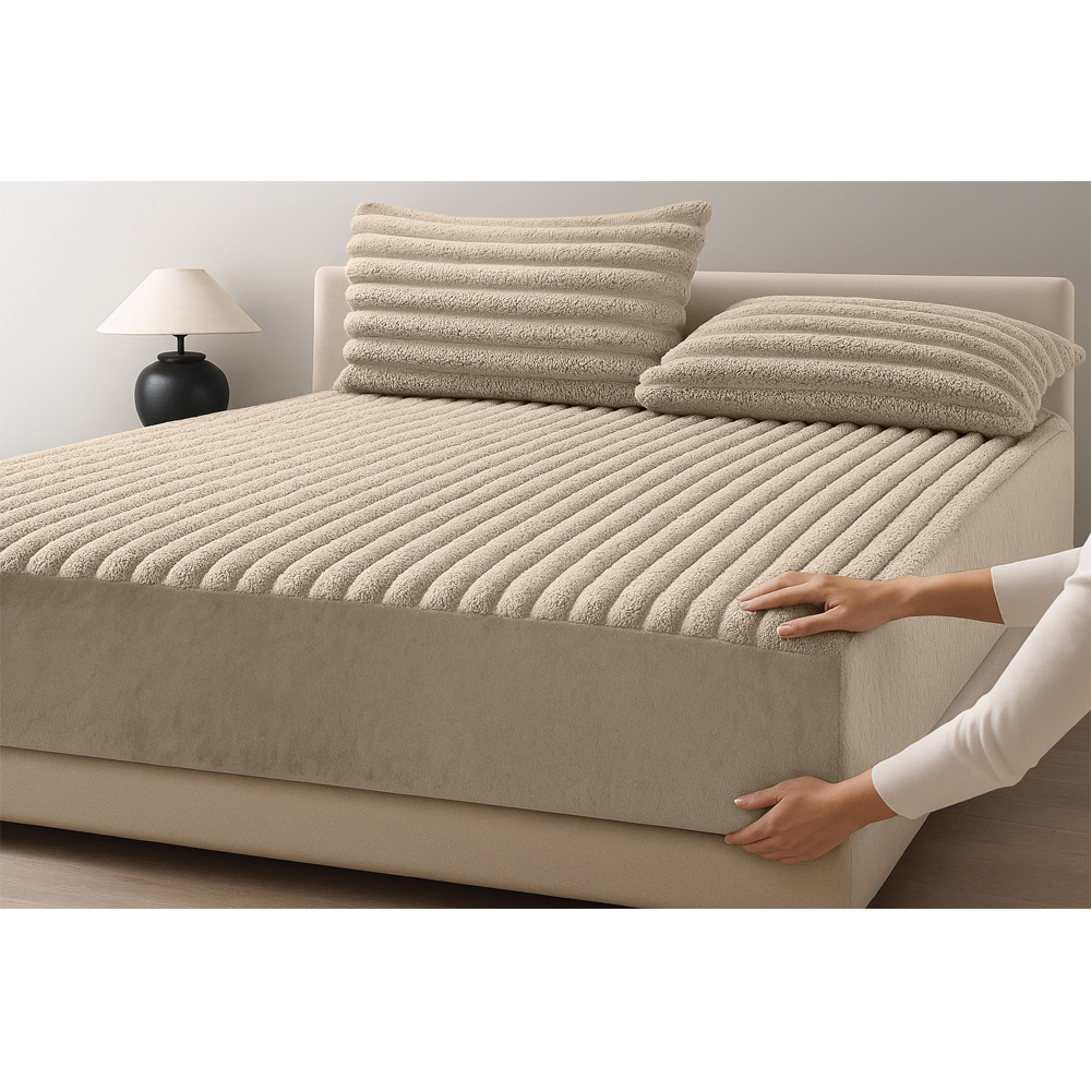 Velosso Super King Size Beige Jumbo Cord Fitted Bed Sheet