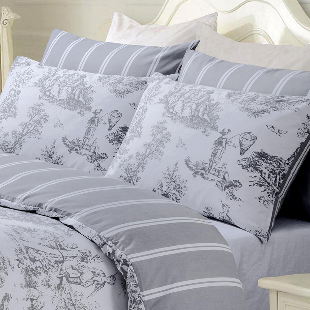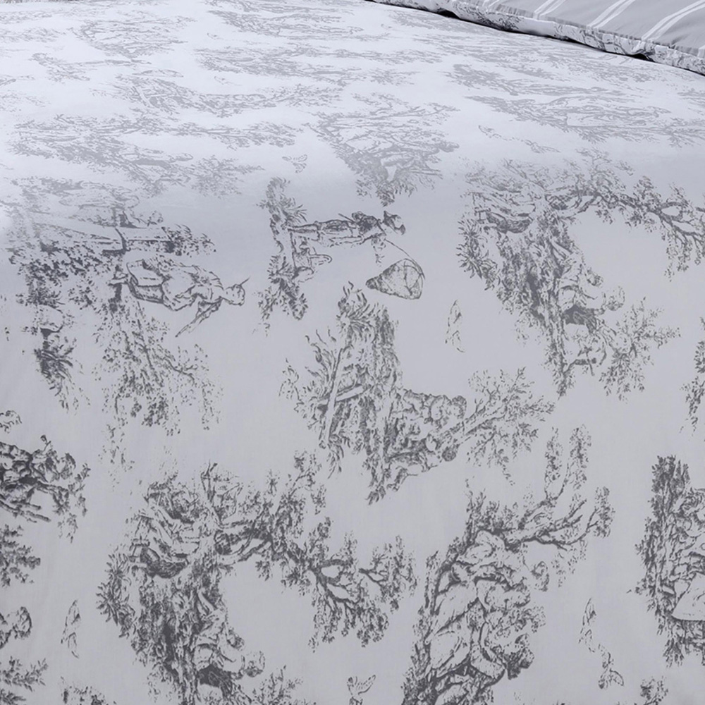 Experience timeless sophistication with this classic French-themed Velosso Toille Single Grey Duvet Set. Inspired by traditional French aesthetics, this exquisite design effortlessly blends elegance with comfort and is meticulously crafted from premium polycotton fabric. The set is adorned with a delicate, charming pattern that exudes vintage allure. It is a perfect harmony of durability and softness as you immerse yourself in the enchanting world of classic French design with every night's sleep. This set includes one duvet cover and one pillowcase made from easy-care fabric. It is also machine washable, which provides added convenience.