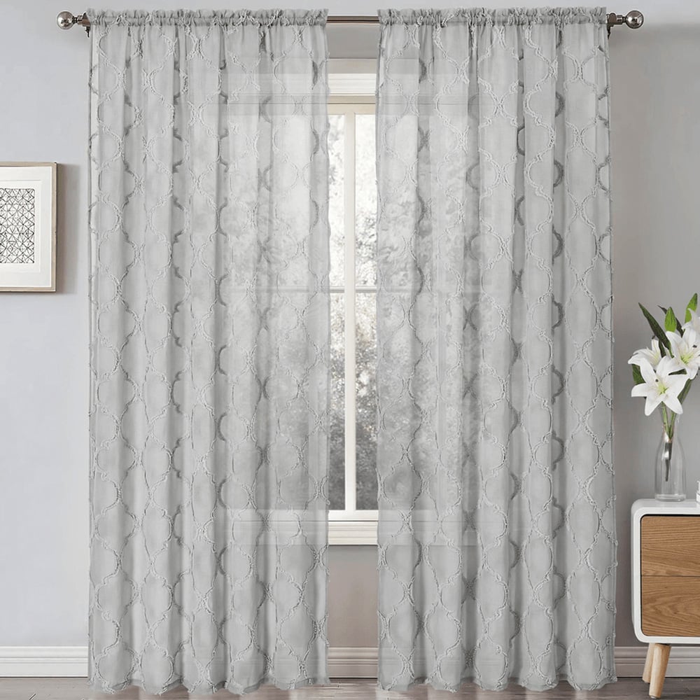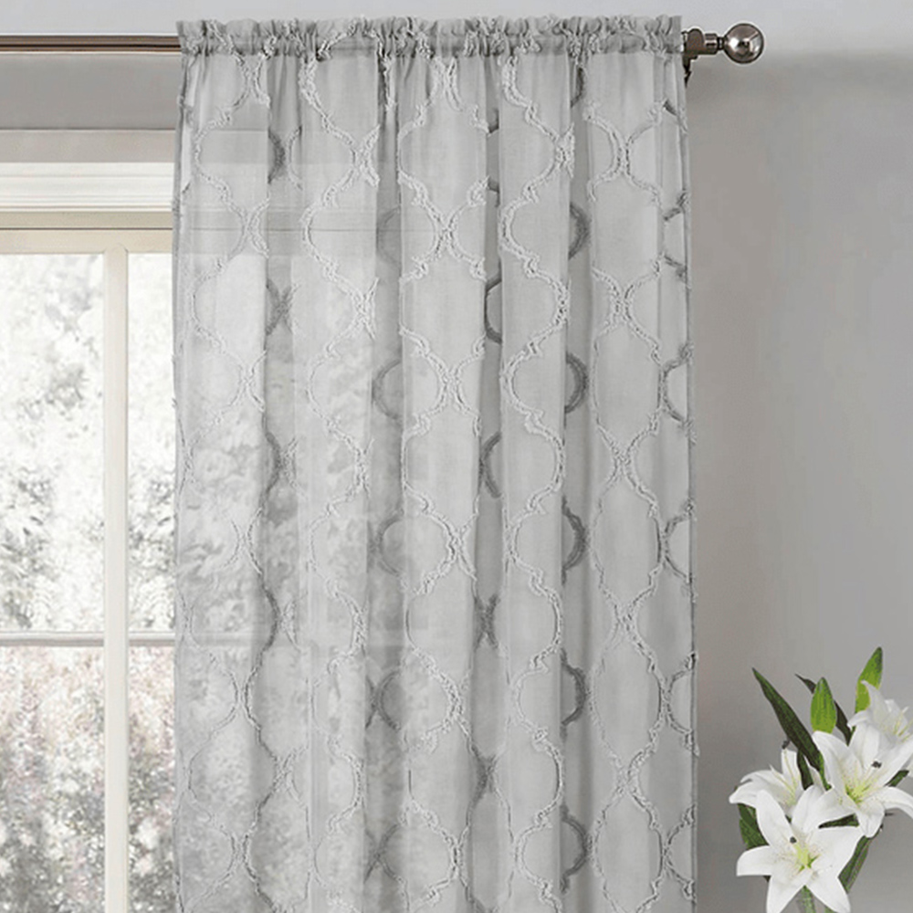 Velosso Tufted Grey Mariella Sheer Voile Panel Curtain 150 x 228cm