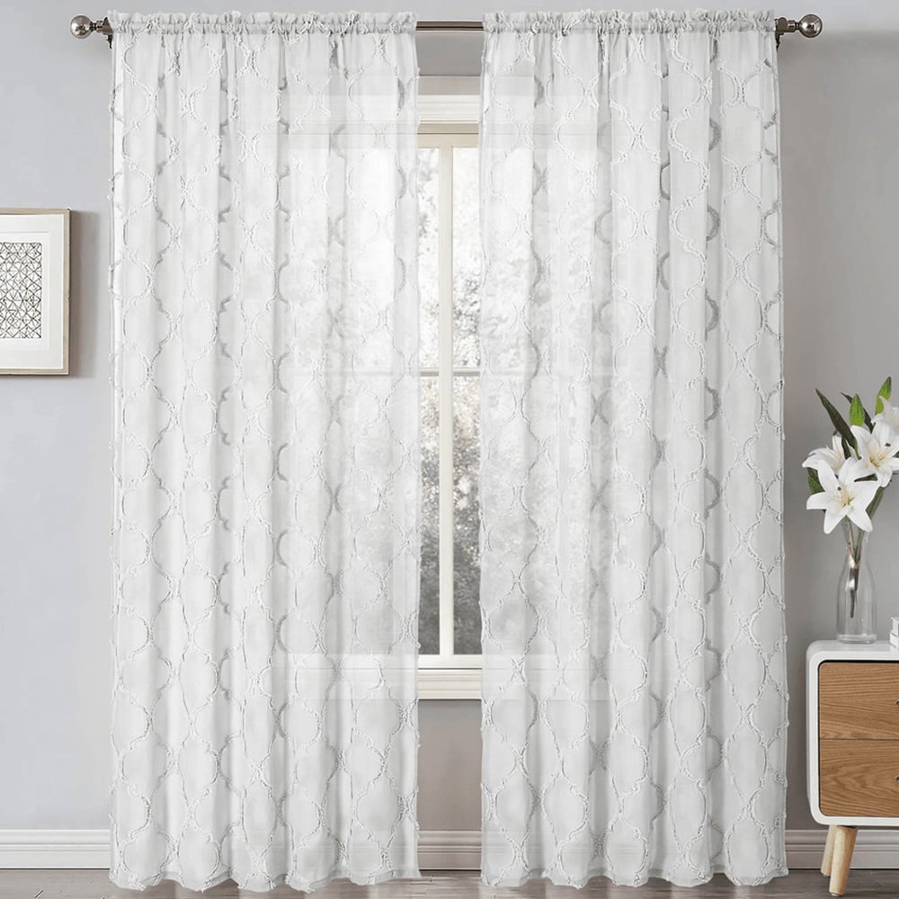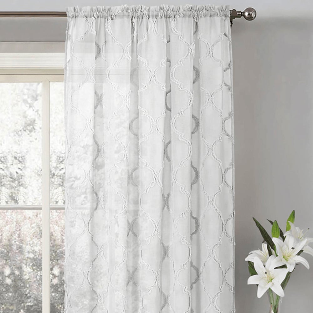 Velosso Tufted White Mariella Sheer Voile Panel Curtain 150 x 183cm