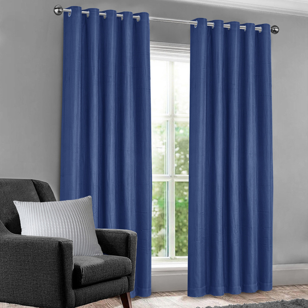 Velosso Waffle Navy Blackout Curtains 117 x 137cm
