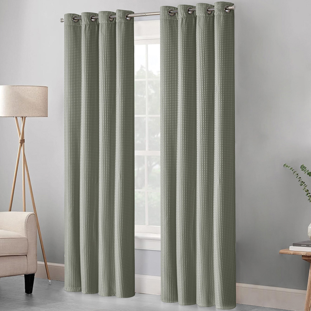 Velosso Waffle Sage Blackout Curtains 137 x 116cm
