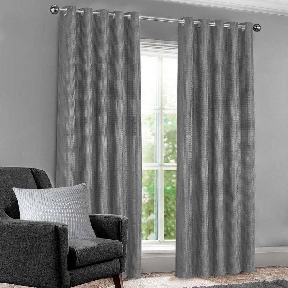 Velosso Waffle Silver Blackout Curtains 168 x 183cm