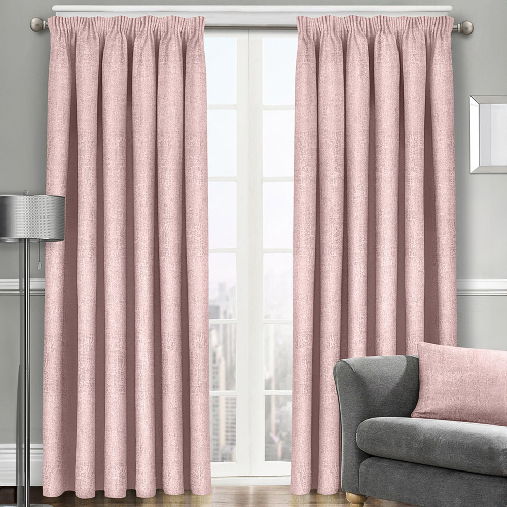 Step up your décor game with the and brighten up your home with the Velosso Westwood Blush Pink Curtains 168 x 137cm. These stylish and functional curtains feature an elegant, embossed design that adds sophistication to any room. Made from high-quality 100% polyester, they hang beautifully and are built to last. The lovely blush pink colour matches any décor, making it easy to refresh your space. These dim-out curtains provide extra privacy, block drafts, and keep your room cool in summer and warm in winter, helping you save energy. The triple-layered fabric reduces outside noise and filters light, blocking harmful UV rays. These curtains are a smart choice for a stylish, practical, and energy-efficient upgrade to your home.