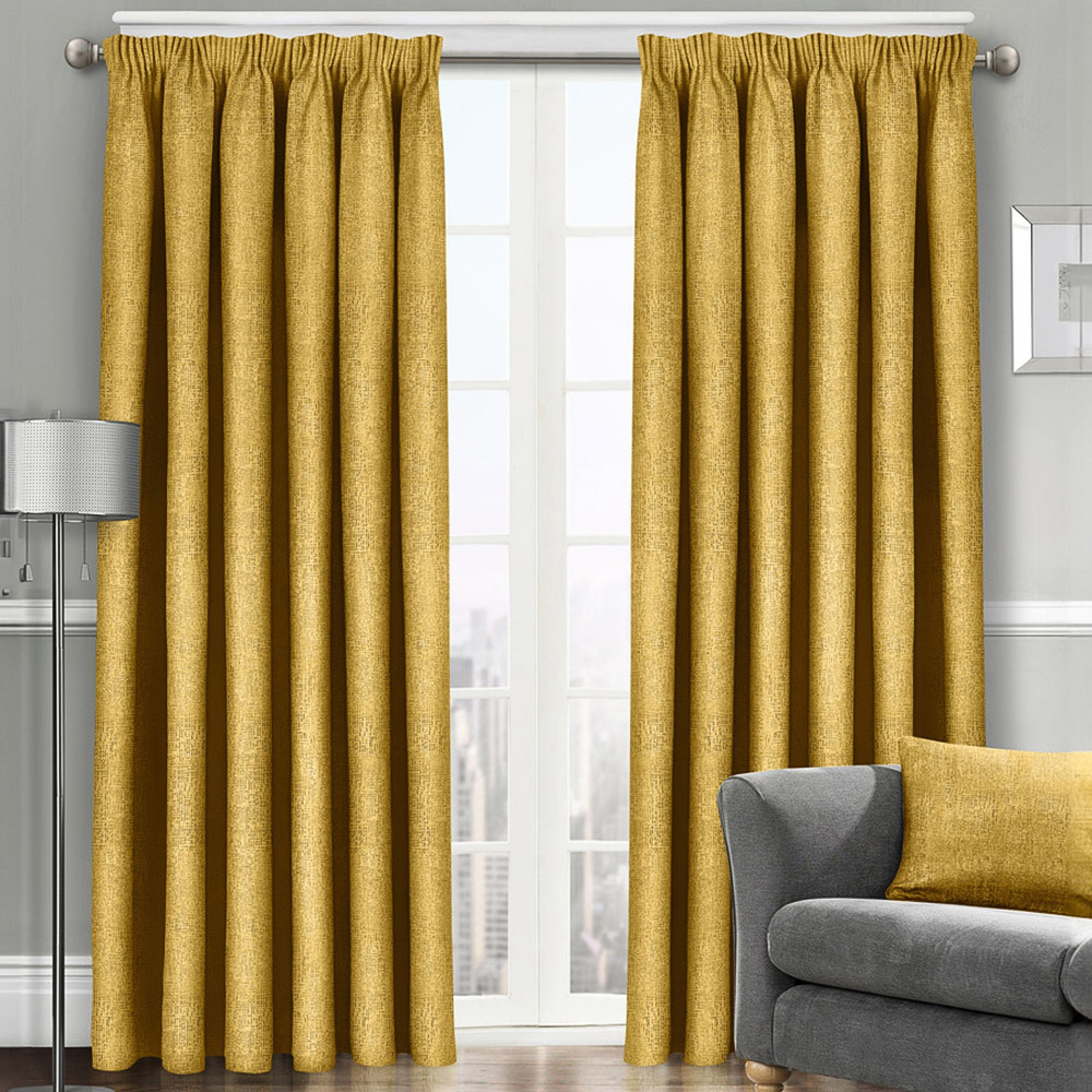 Step up your décor game with the and brighten up your home with the Velosso Westwood Ochre Curtains 168 x 229cm. These stylish and functional curtains feature an elegant, embossed design that adds sophistication to any room. Made from high-quality 100% polyester, they hang beautifully and are built to last. The lovely ochre colour matches any décor, making it easy to refresh your space. These dim-out curtains provide extra privacy, block drafts, and keep your room cool in summer and warm in winter, helping you save energy. The triple-layered fabric reduces outside noise and filters light, blocking harmful UV rays. These curtains are a smart choice for a stylish, practical, and energy-efficient upgrade to your home.
