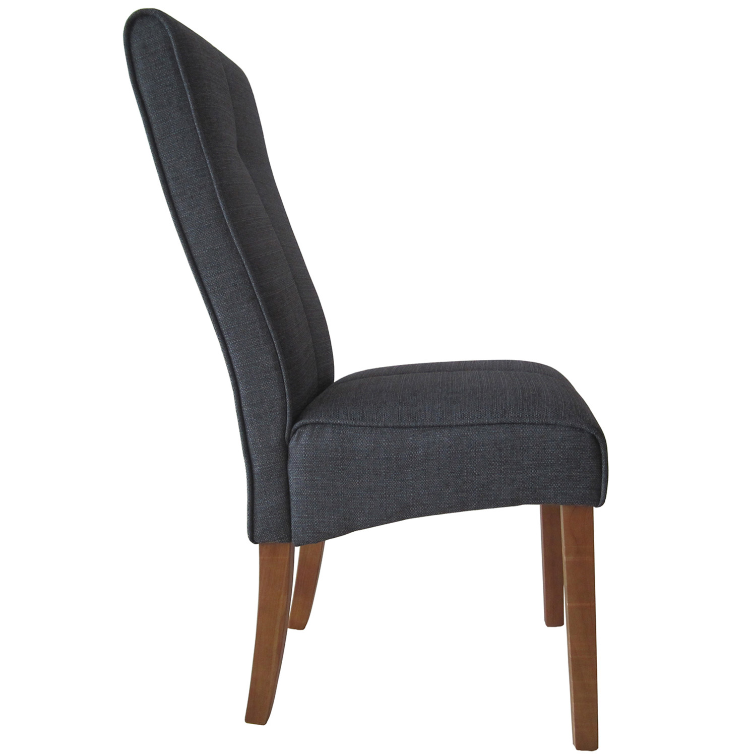 A trendy and stylish addition to your dining room, this Pair of Verona Dining Chairs are constructed with durable rubberwood legs and upholstered in textured linen-effect fabric with stitched detail. Featuring arched high backs and a padded seat for great comfort, these dining chairs are perfect for everyday use at mealtimes and entertaining guests. Finished in contemporary tones, these chairs will lend themselves to most dining rooms and tables and bring a fashionable seating solution to the hub of your home.