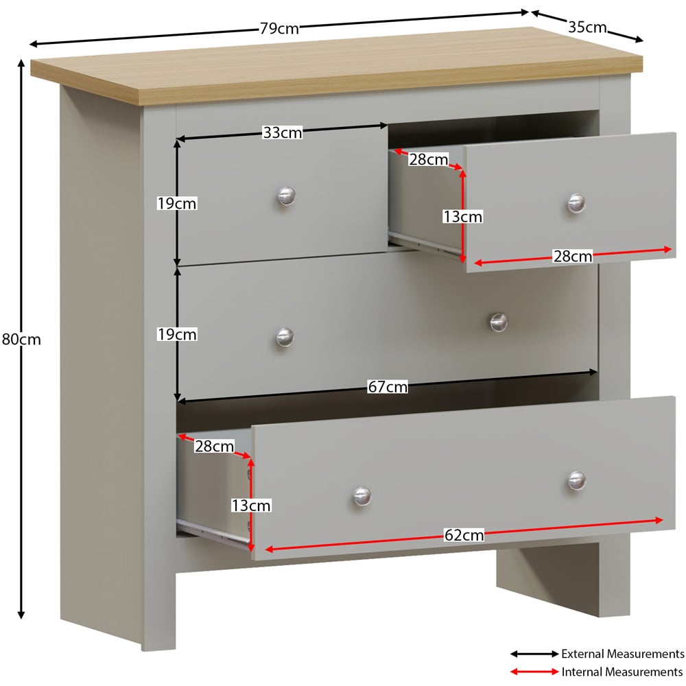Introducing the Vida Designs Arlington 4 Drawer Grey Shaker Style Chest of Drawers, a stunning embodiment of practicality and elegance, perfect for enhancing the beauty and functionality of your living space. With its thoughtful design, this chest of drawers features two large and two smaller drawers, offering generous storage capacity to keep your belongings organised and easily accessible. From clothing and linens to personal items, this chest provides a dedicated space for all your essentials. The classic Shaker style is beautifully showcased in the clean lines and minimalist details of the unit. Also, its simplicity and understated charm add a touch of sophistication to any room, making it a versatile addition to various interior styles. Crafted with precision and attention to detail, the chest of drawers boasts a sturdy and reliable construction that ensures long-lasting durability. Plus, the smooth wooden surface exudes a sense of refinement, creating an inviting ambience in your living space. Please Note: This item requires self-assembly with easy-to-follow instructions provided. The actual colour of the product may vary slightly as your screen display setting and lighting with your home environment may differ from our own. Weight Limit: 5kg per drawer and 10kg tabletop.