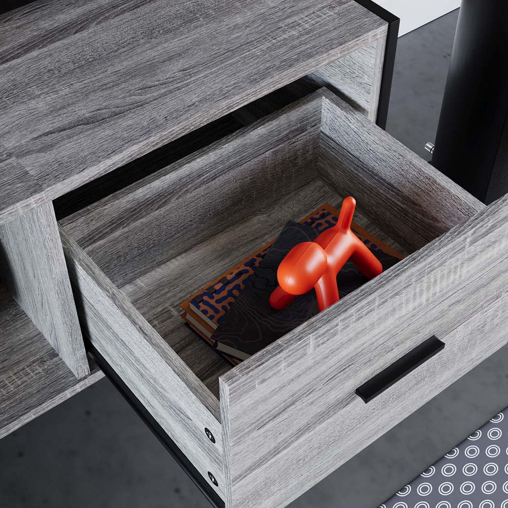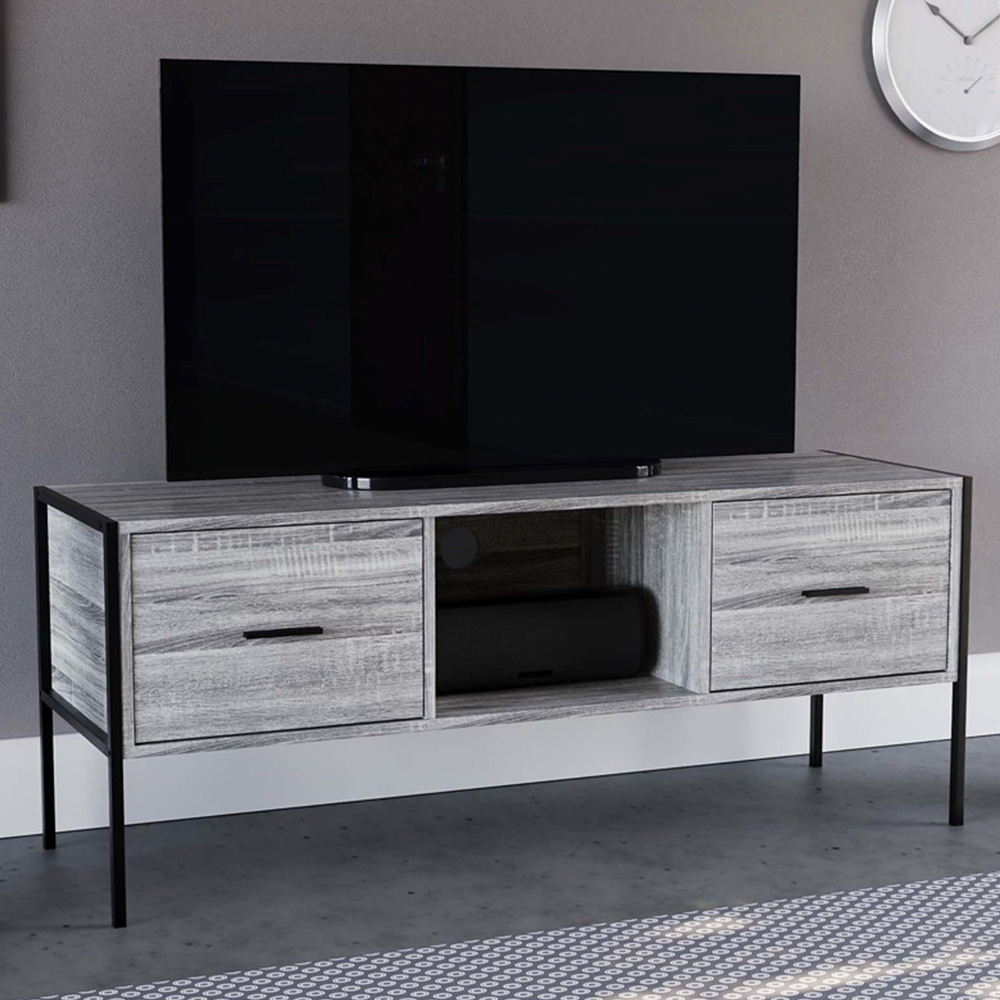 - Industrial 2-drawer TV unit with metal accents