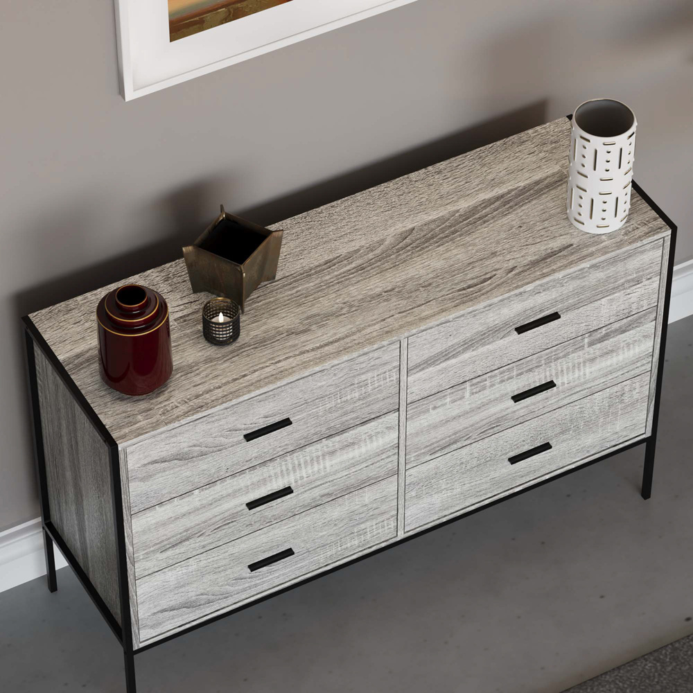 Vida Designs Brooklyn 6 Drawer Grey Rustic Metal Frame Chest of Drawers