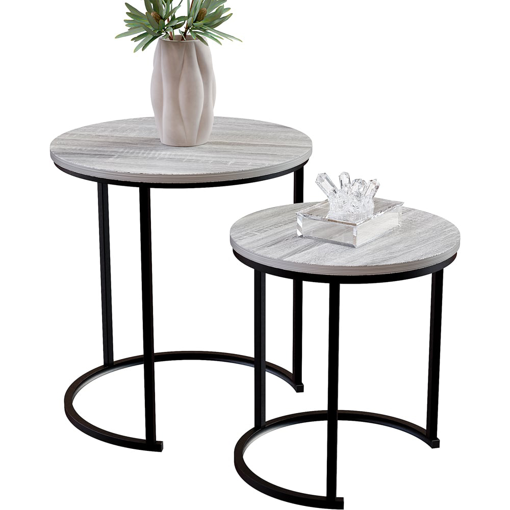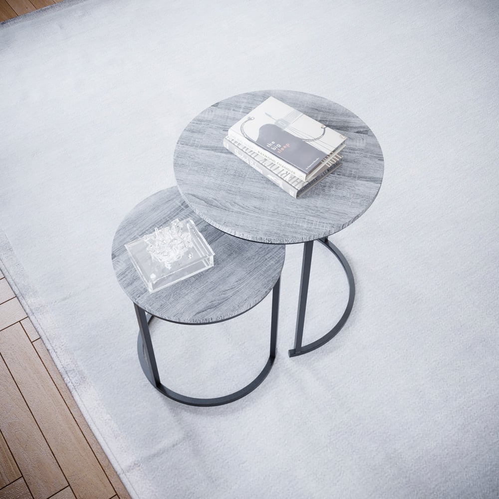 Make a beautiful addition to your living space with this Vida Designs Brooklyn Grey Nest of Tables Set of 2. Boasting robust metal legs and an industrial aesthetic, this Brooklyn table set seamlessly offers functionality with modern urban appeal. Each table in the set is made with excellent craftsmanship, featuring sturdy metal legs that provide a stable foundation and a sleek finish that adds an edgy touch to your decor. Constructed with MDF and iron, these powder-coated tables boast durability that goes hand in hand with their aesthetic charm. The weight limit for each table is small – 15kg and large – 20kg. This set not only serves as a practical solution for your everyday needs but also elevates your space with its distinctive style. Whether you're entertaining guests or seeking a space-saving solution, these tables offer a perfect balance of form and function. Please note - The actual colour of the product may vary slightly as your screen display setting and lighting with your home environment may differ. Also, it requires self-assembly and comes with easy-to-follow instructions. Measurements: large table: H50.5 x W48 x D48cm, and small table: H41.5 x W37 x D37cm.