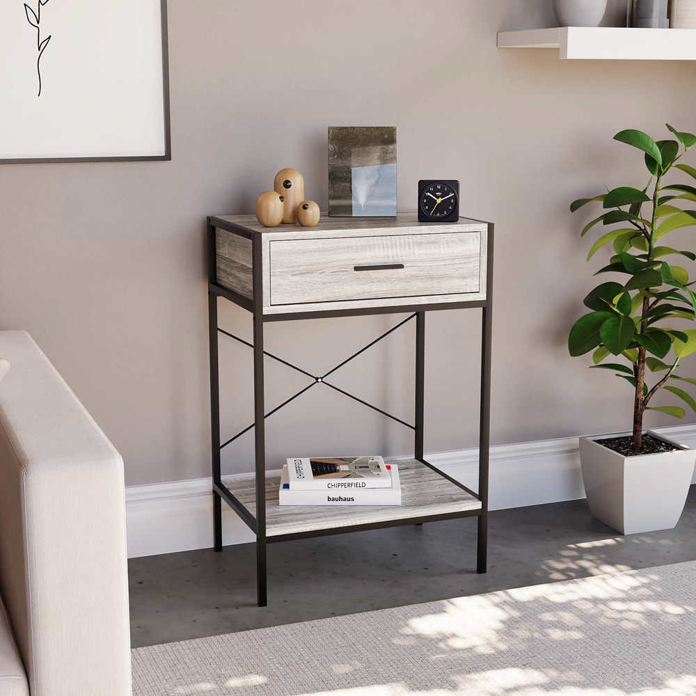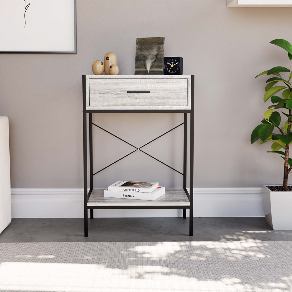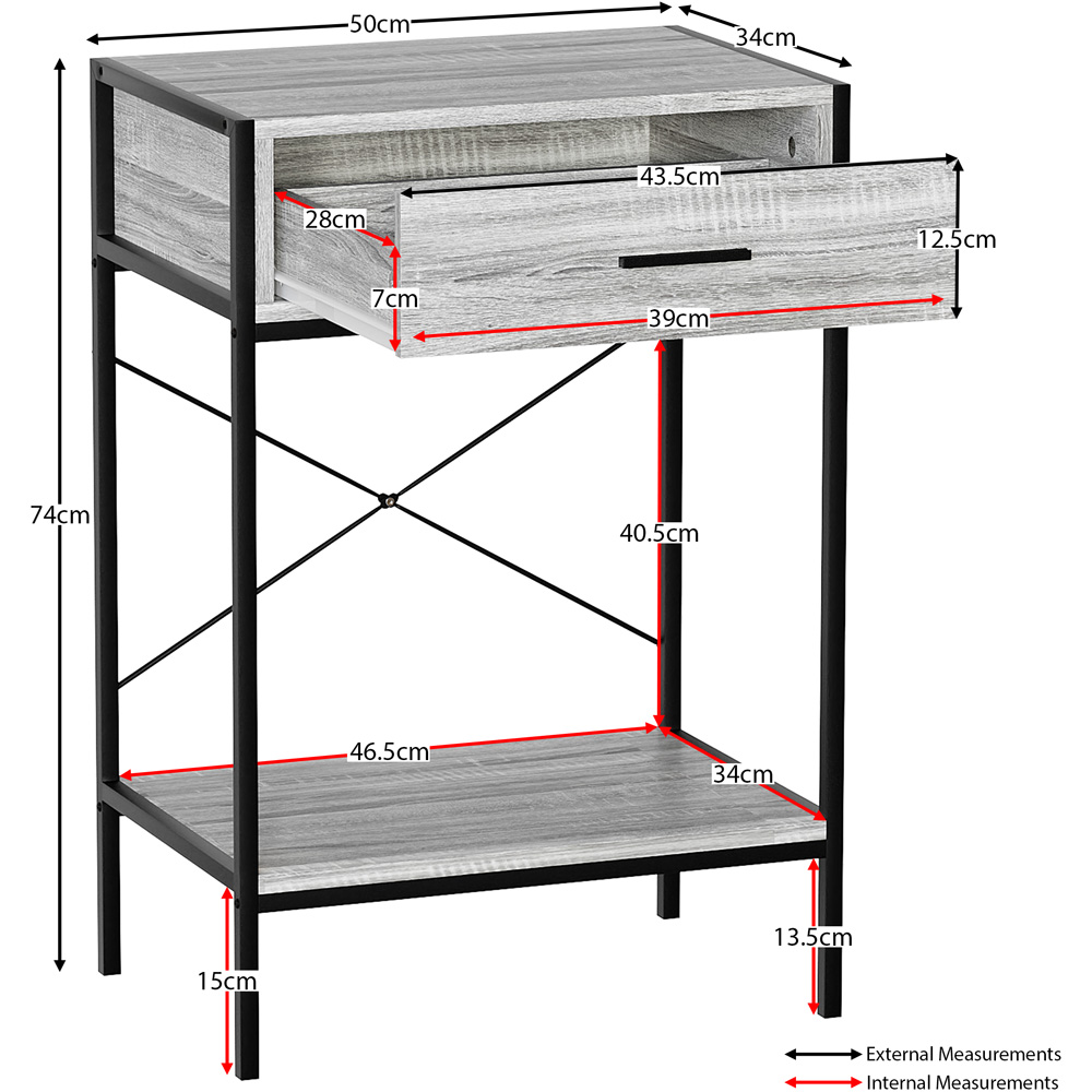 The Vida Designs Brooklyn Single Drawer Grey Rustic Industrial Console Table is a captivating fusion of rugged charm and modern functionality. This console table embodies the essence of industrial design, adding a touch of contemporary style to your entryway, hallway, or living space. Crafted with meticulous attention to detail, this console table features metal accents and rustic finishes that exude authenticity. The combination of metal and wood creates a compelling look that complements modern, vintage, and eclectic decor themes. The console table comes with a spacious drawer, offering convenient storage for your keys, mail, or other essentials, helping you keep your entryway or hallway organized and clutter-free. Designed with both style and practicality in mind, the Console Table also features a sturdy and spacious underneath shelf. This additional shelf provides ample space to display your favourite decor items or store everyday items, ensuring easy access and a neat arrangement. With its industrial charm and versatile design, this console table is perfect for various uses, whether it's a hallway table, entryway console, or a stylish addition to your living room. Weight Limit: 5kg Per Drawer / 5kg Per Shelf / 15kg Table Top. Please Note: This item requires self-assembly with easy-to-follow instructions provided. The actual colour of the product may vary slightly as your screen display setting and lighting with your home environment may differ from our own.