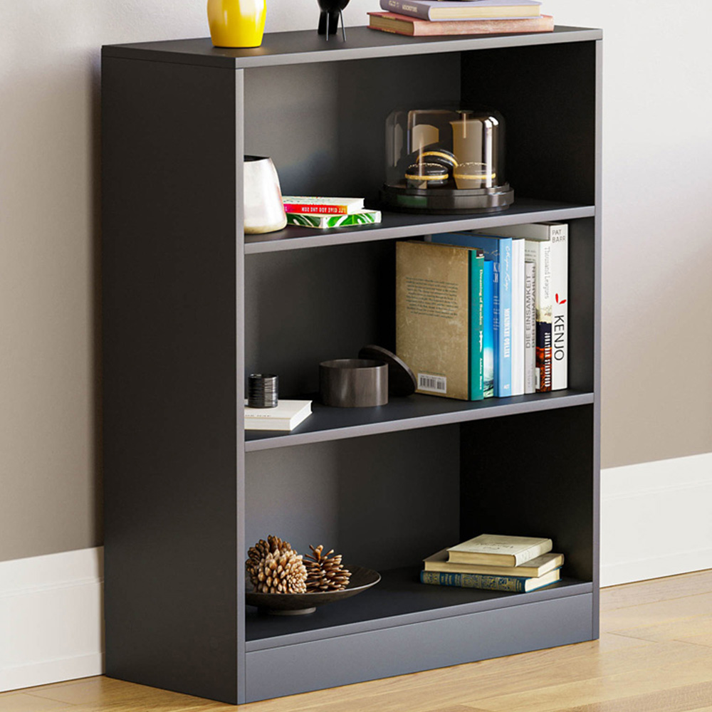 Add a touch of sophistication to any room with Vida Cambridge 3-Tier Low Bookcase. The three shelves offer ample space for storing and showcasing your books, photo frames, and other keepsakes. With sturdy and durable construction - it ensures that this bookcase will withstand the test of time. The compact design makes it ideal for small spaces, and the low height makes it easy to reach your items. With its black finish - this bookcase is the perfect solution for organizing and displaying your favourite books and decorative items.