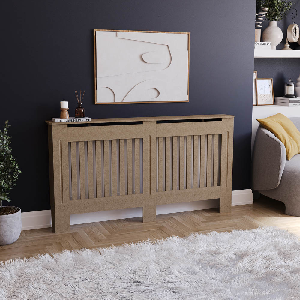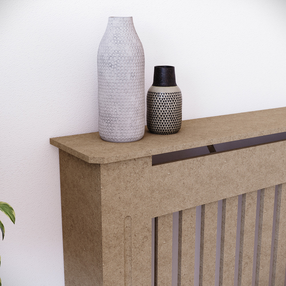 This Chelsea radiator cover is expertly crafted from durable MDF with a sleek powder-coated finish, ensuring long-lasting quality and a clean, modern look that complements any home decor. Featuring vertical slats for optimal heat circulation, it allows for even warmth throughout the room while cleverly concealing unsightly radiators. The flat top surface adds practical versatility, perfect for displaying decorative pieces, housing your favourite plants, books, or photos, or simply offering extra storage space. Designed with safety in mind, this cover acts as a protective barrier, making it an ideal solution for families with children or pets by preventing accidental burns or injuries. Functional, stylish, and safe, the Chelsea radiator cover is a smart and elegant addition to any living space.