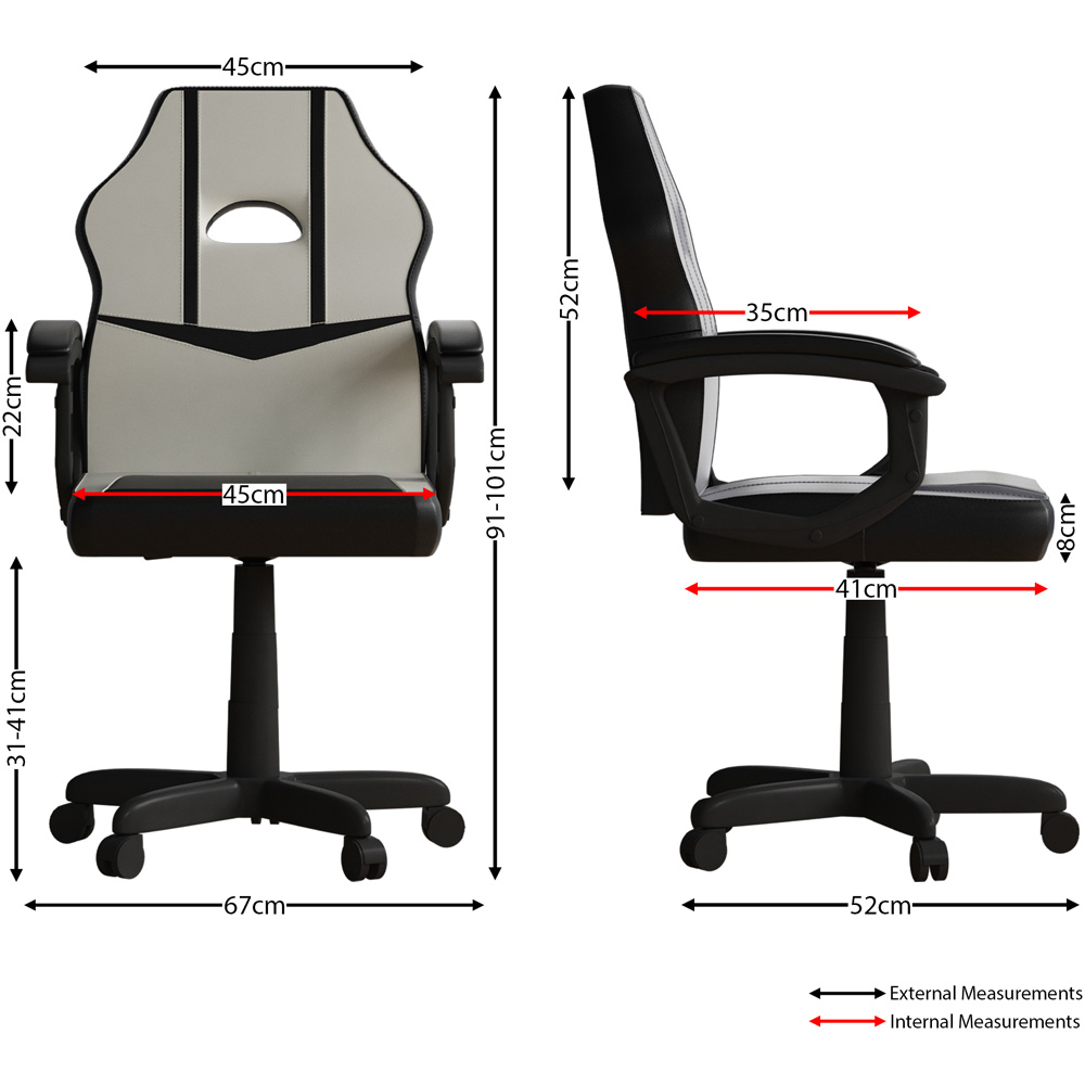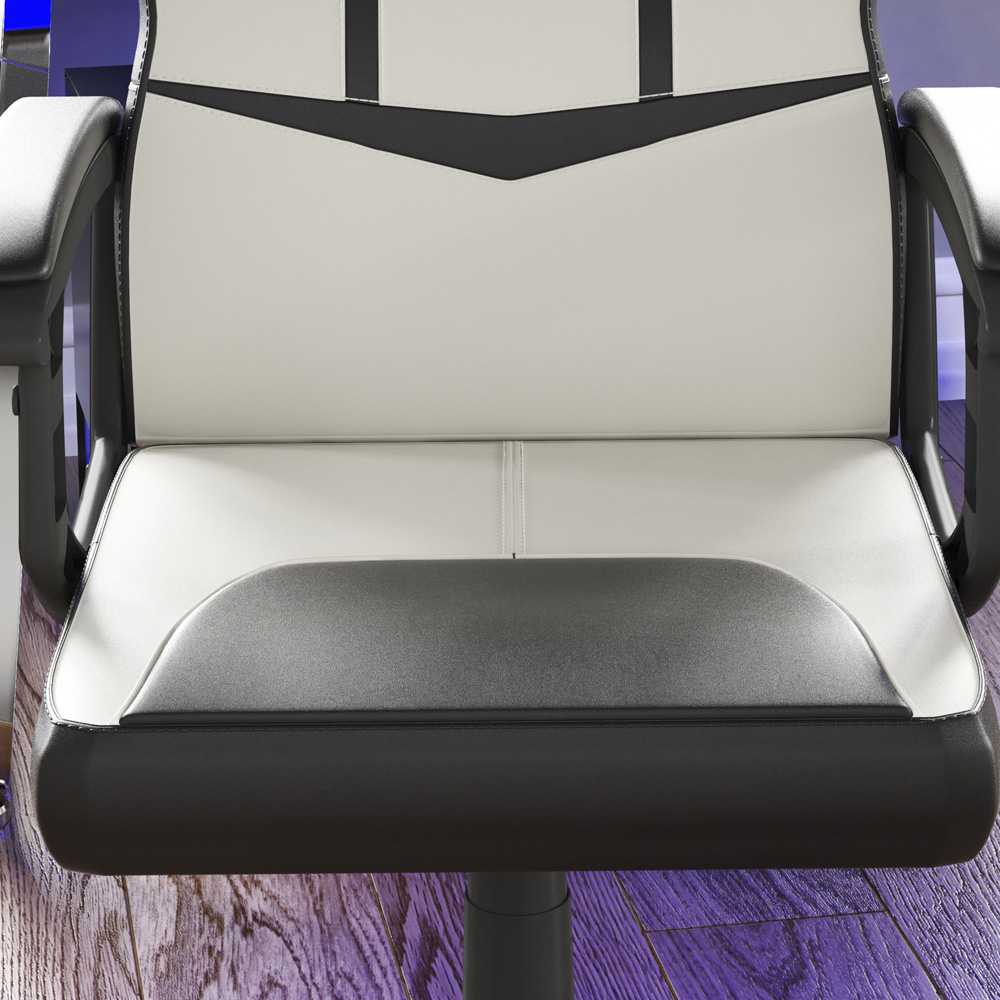 Welcome to the world of comfort and style with this Vida Designs Comet White and Black Racing Gaming Chair. Designed to elevate your gaming experience, this chair is the ultimate companion for long gaming sessions, work hours, or simply relaxing in utmost comfort. Featuring an adjustable height mechanism, the chair allows you to find your perfect seating position for optimal support and posture. So, whether you're playing games, working, or just unwinding, this chair ensures you stay comfortable and focused throughout. Indulge in the luxurious feel of the faux leather upholstery, which not only adds a touch of sophistication to the chair but also makes it easy to clean and maintain. The faux leather ensures durability, ensuring the chair remains a reliable and stylish addition to your gaming setup for years to come. Ensuring comfort, the padded armrests give you a relaxed feel even during intense gaming sessions. Say goodbye to discomfort and soreness as you rest your arms on the plush and supportive armrests. Designed with both functionality and aesthetics in mind, this chair is the perfect blend of style and performance. Please Note: This item requires self-assembly with easy-to-follow instructions provided. The actual colour of the product may vary slightly as your screen display setting and lighting with your home environment may differ from our own. Weight Limit: 120kg.