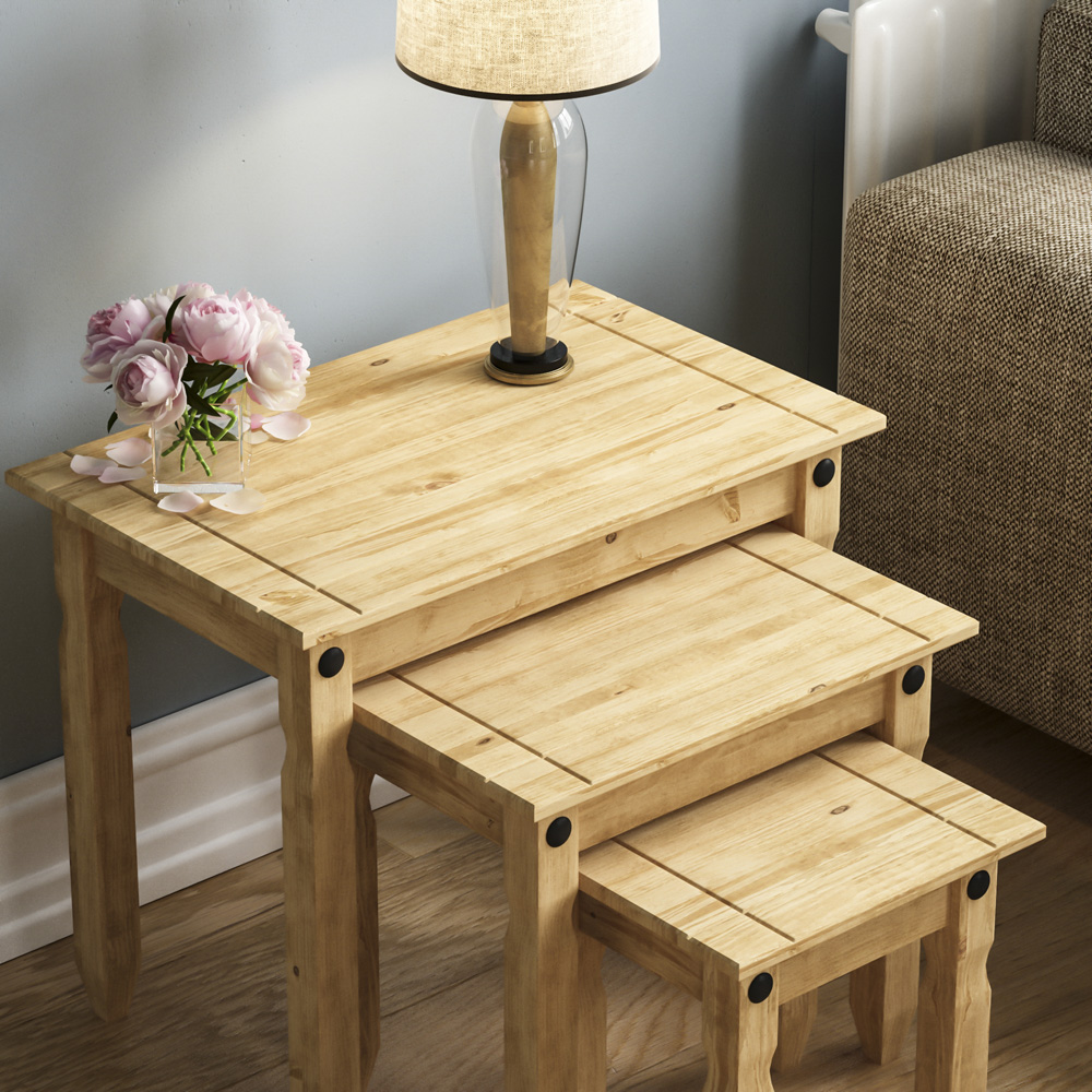 Vida Designs Corona Pine Nest of Tables Set of 3