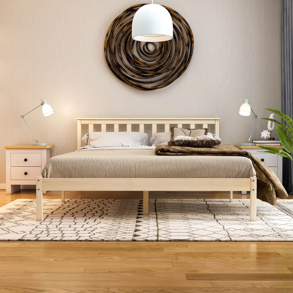 Introducing the Vida Designs Milan King Pine Low Foot Wooden Bed Frame, a timeless and charming addition to your bedroom. Crafted from solid pine, this bed frame offers durability and strength, ensuring a reliable and long-lasting sleep solution. It features a classic design with its vertical slatted headboard, evoking a sense of traditional style and sophistication. The clean lines and graceful silhouette of the bed frame make it a versatile choice that effortlessly complements various bedroom decors. Designed for both comfort and support, the bed has a slatted base that provides excellent mattress support and promotes proper air circulation. Embracing the timeless shaker style, the bed frame adds a touch of understated elegance to any bedroom setting. Assembly of this bed frame is straightforward, thanks to the included instructions and hardware. Also, with its sturdy construction and attention to detail, this bed frame is designed to provide a stable and secure foundation for your mattress. Please Note: This item requires self-assembly with easy-to-follow instructions provided. The actual colour of the product may vary slightly as your screen display setting and lighting with your home environment may differ from our own. Weight Limit: 120kg.