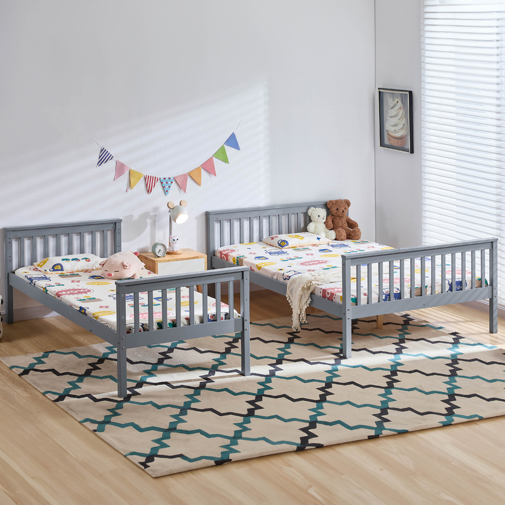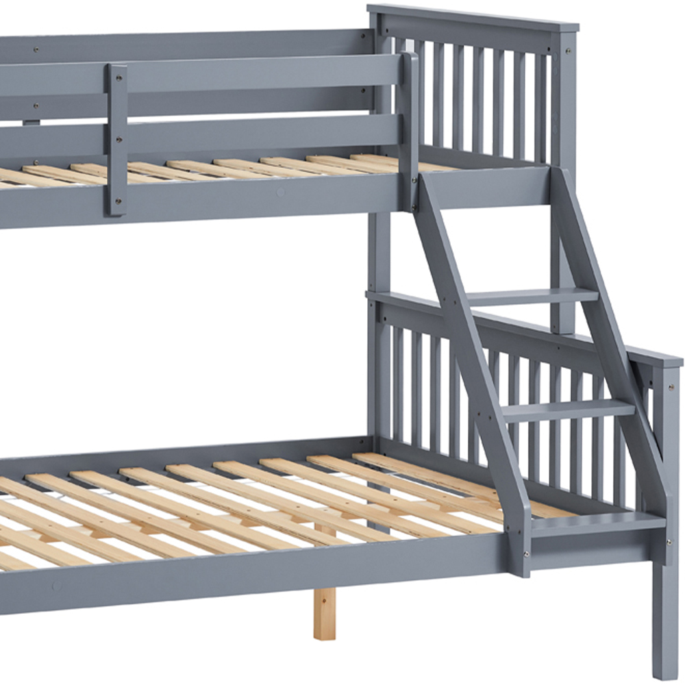 Introducing the Vida Designs Milan Triple Sleeper Grey Bunk Bed, a versatile and functional addition to any bedroom. This bunk bed offers a perfect solution for accommodating multiple sleepers with a three-foot bed on the top bunk and a spacious four-foot bed on the bottom bunk. Designed for your convenience, this bed comes with a flexible ladder that can be positioned on either the left or right-hand side for easy access to the top bunk. One of the standout features of this bunk bed is its adaptability. As your needs change or your children grow, you have the option to separate the bunk beds into two individual beds. This transforms the setup into two separate and functional single beds, offering even more sleeping space when needed. Crafted with quality and durability in mind, the bed is built to withstand the demands of daily use. The sturdy construction provides a secure and stable sleeping environment, giving you peace of mind as you rest. Also, it creates a comfortable and inviting bedroom setting by optimising your floor space without compromising on style. Plus, the sleek and contemporary design adds a touch of elegance to any room, complementing various interior themes. So, whether you have a growing family or need extra sleeping options for guests, this bed is the ideal choice. Please Note: This item requires self-assembly with easy-to-follow instructions provided. The actual colour of the product may vary slightly as your screen display setting and lighting with your home environment may differ from our own. Weight Limit: 140kg per bunk.