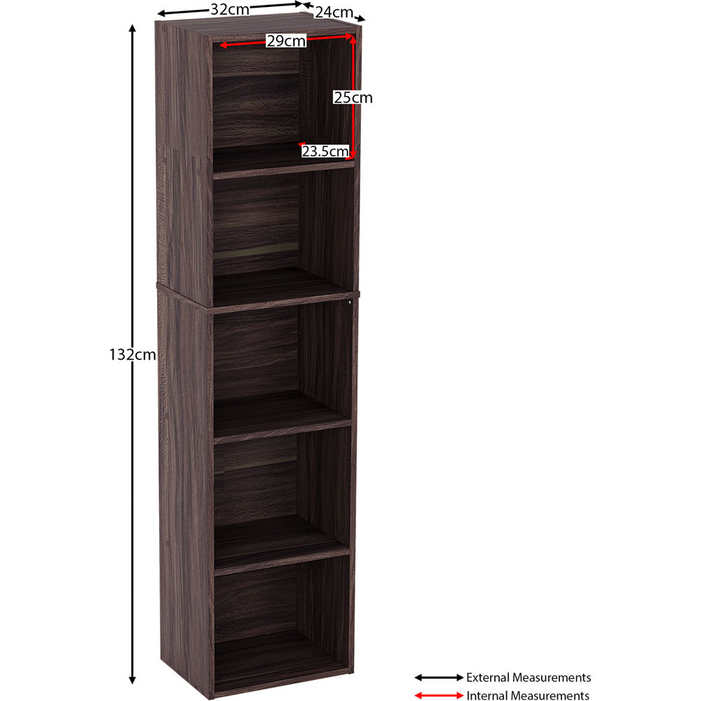 The Vida Designs Oxford 5-Tier Cube Bookcase in Walnut is a practical and stylish storage solution for your home or office. This bookcase features five spacious shelves that are made from durable MDF material and finished in a sleek walnut colour. The sturdy construction ensures that your items will be secure on the shelves, and the bookcase is built to last. Whether you're looking to store and display your books, decorative items, or other possessions, the Oxford 5-Tier Cube Bookcase in Walnut is an ideal choice.