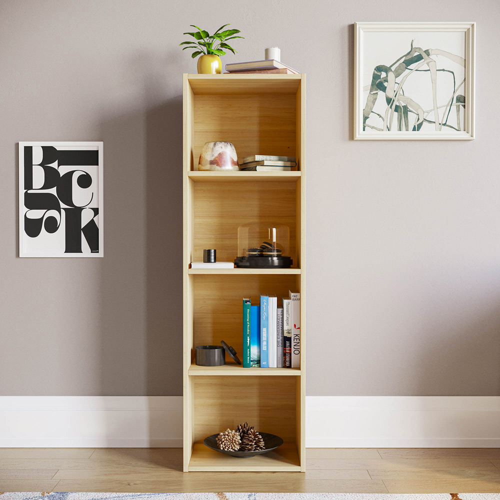 The Vida Designs Oxford 4-Tier Cube Bookcase is a stylish and practical storage solution for your home. With four shelves, this bookcase provides ample space for books, magazines, and other items. Made of durable MDF material and finished in oak, this bookcase has a sleek and modern look. Ideal for small spaces such as home offices, living rooms, or bedrooms, this bookcase is the perfect addition to your space. Whether you're looking to declutter your living space or add some stylish storage to your home, the Oxford 4-Tier Cube Bookcase is an excellent choice.