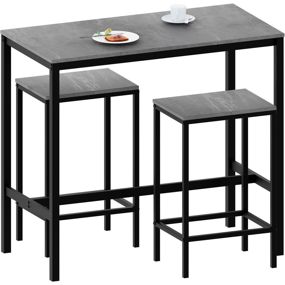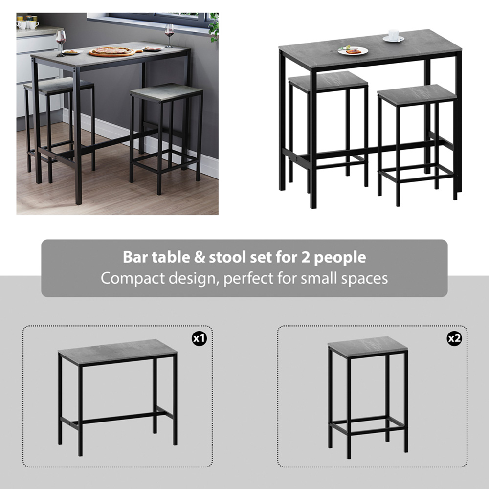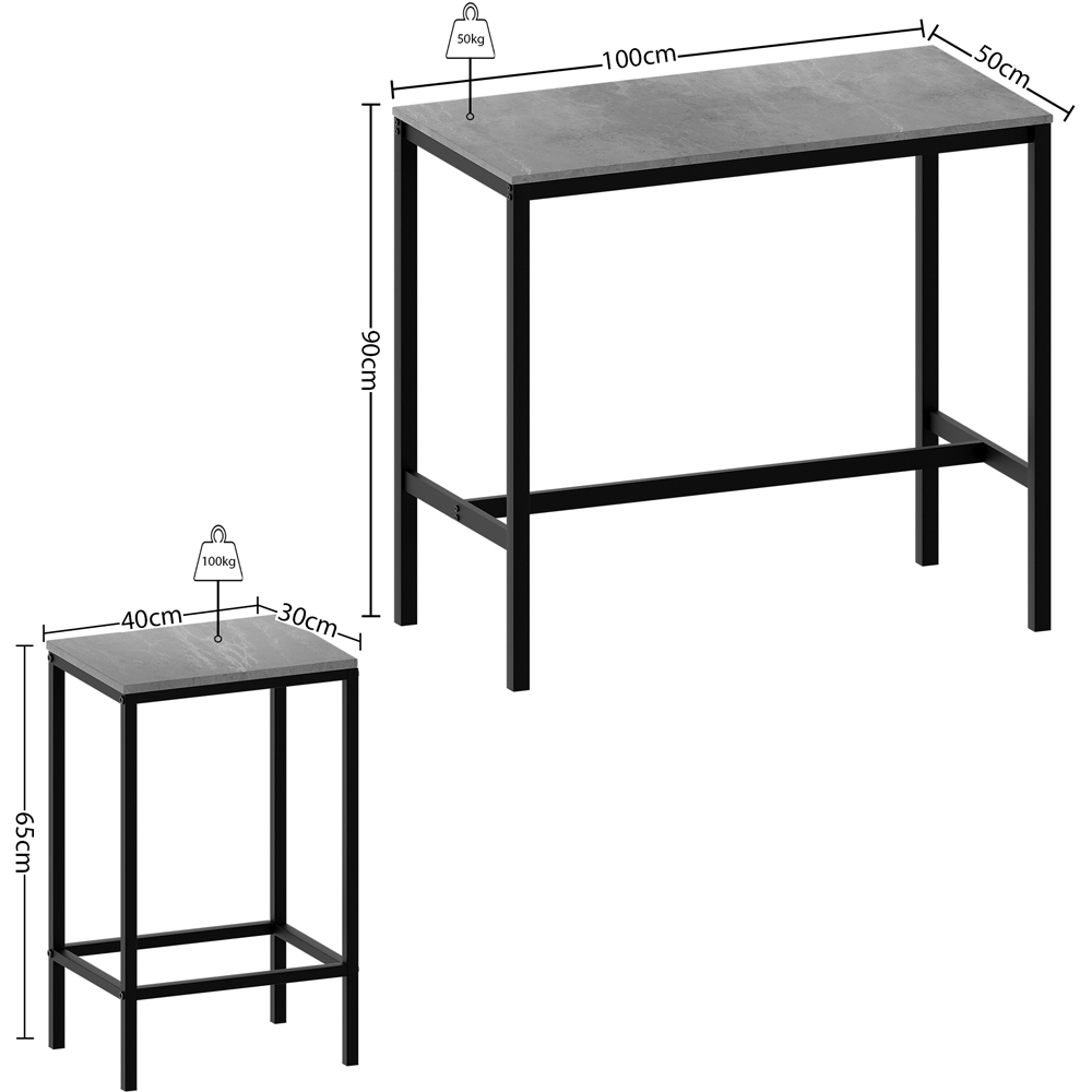 The Vida Designs Roslyn 2 Seater Metal Frame Breakfast Table Set Concrete Grey is the perfect addition to modern homes that value both style and space-saving functionality. Featuring a high-top rectangular table and two coordinating stools, this set is ideal for kitchens, breakfast nooks, or casual dining areas. The combination of a sleek metal frame and wood-effect finishes brings a contemporary industrial touch to your interior. Designed with compact living in mind, the stools tuck neatly under the table when not in use, helping to keep your space tidy and open.