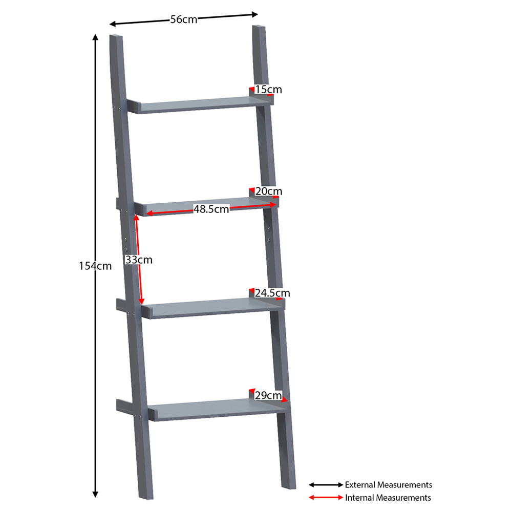 Create ample storage and display space at your home with Vida York 4-Tier Ladder Bookcase. Featuring a sleek, grey finish that complements any decor style - it comes with four spacious shelves. Each shelf is designed to hold books, picture frames, vases, and other items, allowing you to showcase your favourite possessions. The sturdy construction ensures durability and stability. Whether you use it in your home office, living room, or bedroom, this bookcase is sure to become a practical and attractive addition to your space.