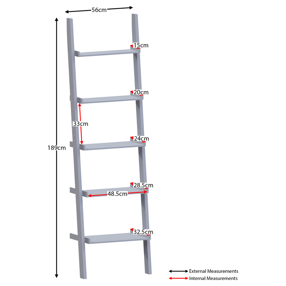 Create ample storage and display space at your home with Vida York 5-Tier Ladder Bookcase. Featuring a sleek, grey finish that complements any decor style - it comes with five spacious shelves. Each shelf is designed to hold books, picture frames, vases, and other items, allowing you to showcase your favourite possessions. The sturdy construction ensures durability and stability. Whether you use it in your home office, living room, or bedroom, this bookcase is sure to become a practical and attractive addition to your space.