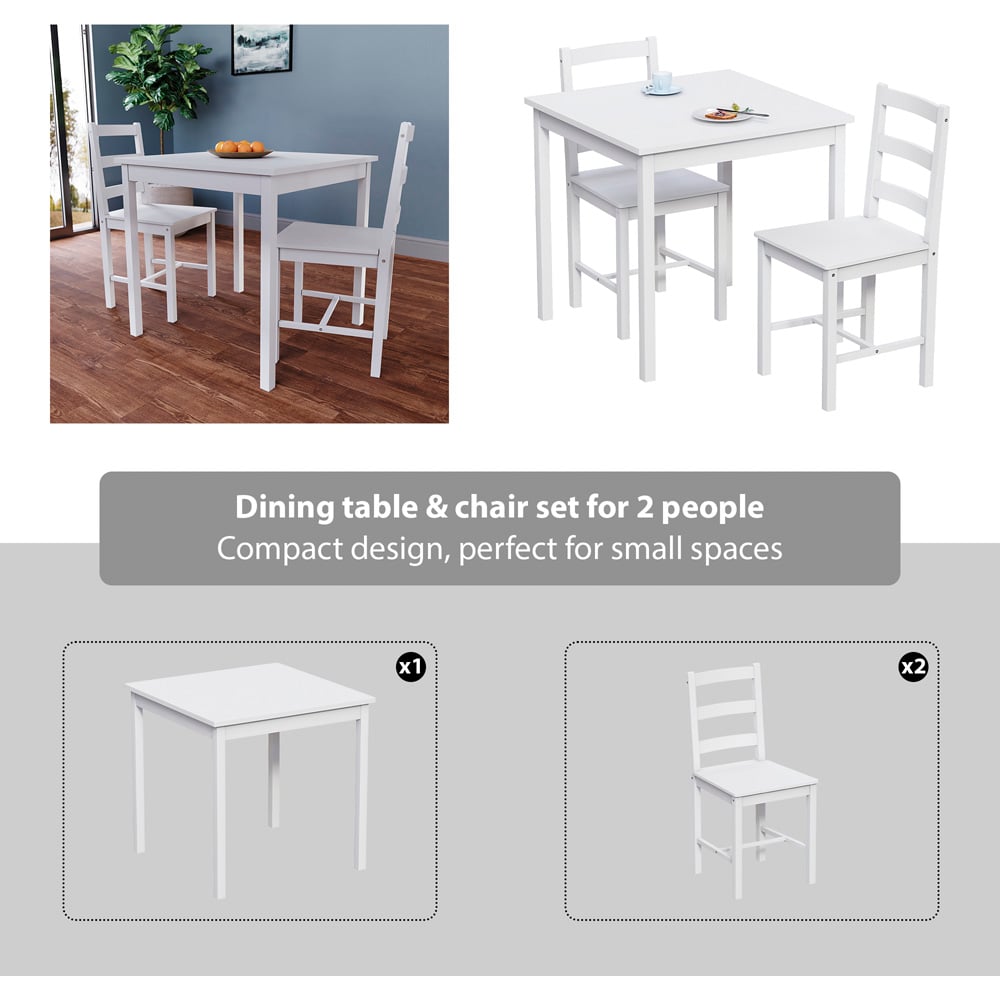The Vida Designs Yorkshire White 2 Seater Dining Set will make a charming and inviting addition to your home. This dining set combines the rustic elegance of country style with the functionality of a well-designed table and chairs. Crafted with meticulous attention to detail, it effortlessly blends classic elements with modern comfort. The centrepiece of this set is the beautifully crafted table, designed to be the heart of your dining space. Its sturdy construction ensures stability and durability, while the warm and inviting finish adds a touch of rustic charm. Gather around this table and create cherished memories with your loved ones. Included in the set are two carefully designed chairs, perfectly complementing the table's aesthetic. With their ergonomic shape and comfortable seating, they provide a cosy and enjoyable dining experience. The chairs feature a harmonious blend of classic and contemporary elements, making them an ideal choice for various interior styles. The Yorkshire 2 Seater Dining Set offers not only style but also practicality. The compact size of the set makes it an excellent choice for smaller spaces, such as kitchens or dining areas with limited room. The versatile design ensures that it seamlessly integrates into your existing decor, enhancing the overall ambience of your home. Weight Limit: 100kg Table / 120kg Per Chair. Please Note: This item requires self-assembly with easy-to-follow instructions provided. The actual colour of the product may vary slightly as your screen display setting and lighting with your home environment may differ from our own.