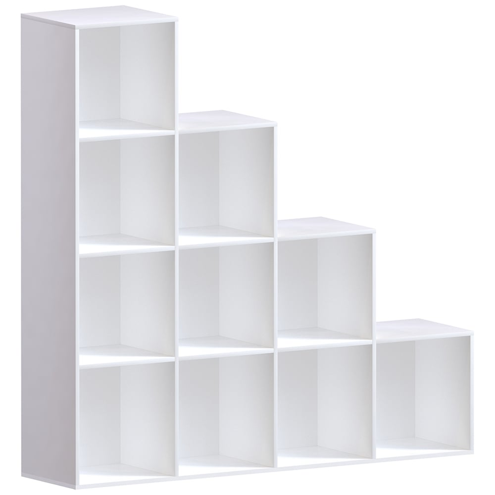 Add style and practicality to your living space with Vida Durham 10 White Cube Staircase Storage Unit. This unit features ten spacious cubes that can be used to store books, toys, clothing, and other household items while the staircase design provides easy access to items stored in the upper cubes. Constructed from MDF wood, this storage unit is durable and built to last. Whether you need a storage solution for your living room, bedroom, or office, this storage unit is a perfect choice.